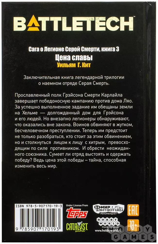 "Цена славы" (The Price of Glory) – третья книга Саги о Легионе Серой Смерти и четвёртый роман во вселенной BattleTech, написанный Уильямом Г. Китом-младшим в 1987 году. Вот уже 3 года наёмники Серого Легиона Смерти успешно выполняют контракты, а весь последний год заняты набегами на территории Дома Ляо. Но в конце военной кампании, вместо обещанной платы, Грэйсона Карлайла и его людей подставляют, обвинив в жестоком военном преступлении.