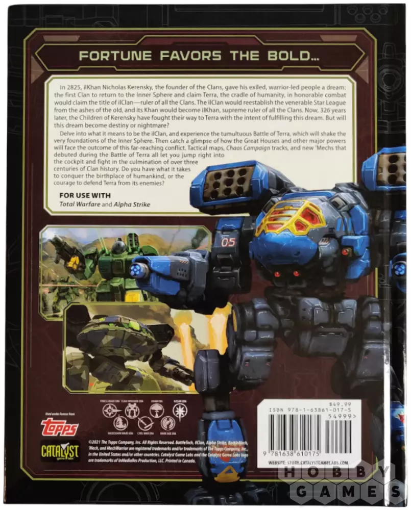 Испытайте на себе, что значит быть ИльХаном, и переживите великую битву за Терру, которая изменит основы Внутреннего Мира. Узнайте, как на результат этого глобального столкновения отреагируют Великие Дома и другие влиятельные игроки. Вас ждут новые карты, боевые мехи, впервые появившиеся в битве за Терру, а также сценарии для Chaos Campaign, которые позволят вам оказаться в центре событий и засвидетельствовать кульминацию более чем трёхсотлетней истории Кланов. Сможете ли вы вернуть родину человечества?