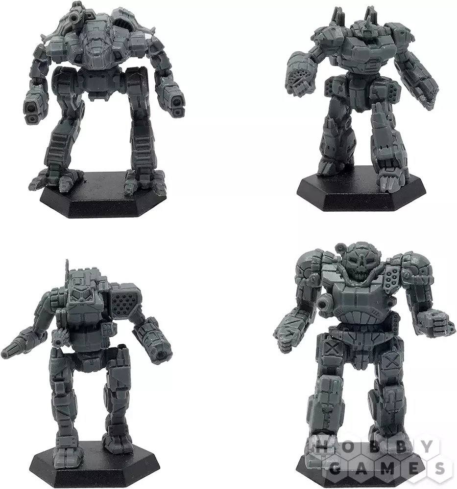 Каждый набор Inner Sphere ForcePack включает в себя четыре высококачественных, полностью собранных боевых меха, а также четыре карты "Альфа-удар" и четыре карты пилотов.