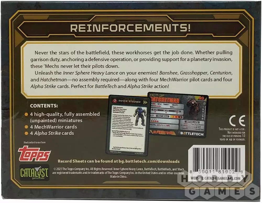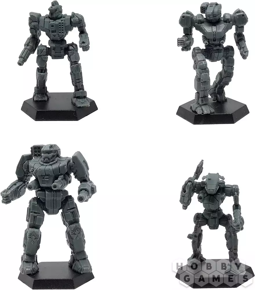 Каждый набор Inner Sphere ForcePack включает в себя четыре высококачественных, полностью собранных боевых меха, а также четыре карты "Альфа-удар" и четыре карты пилотов.