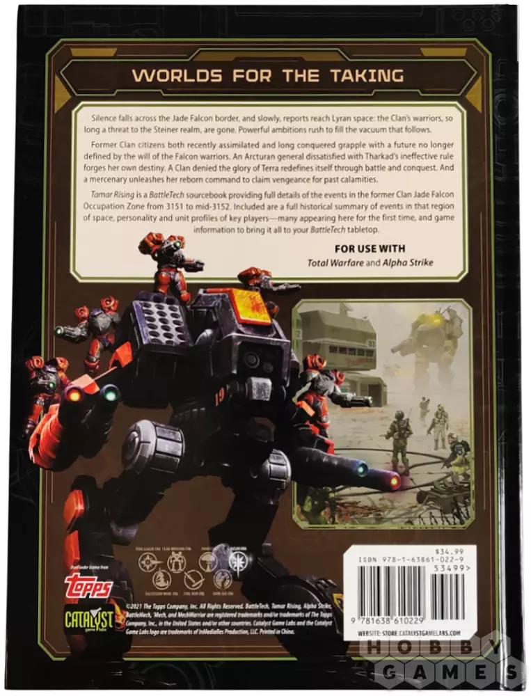 Tamar Rising – книга по вселенной BattleTech, подробно раскрывающая события на территории бывшей зоны оккупации Клана Нефритового Сокола с 3151 по середину 3152 года. В книге вы найдёте полный исторический обзор событий этого региона, профили ключевых игроков на этой арене (многие из которых впервые появляются здесь), а также данные, позволяющие перенести понравившуюся эпоху в партии BattleTech.