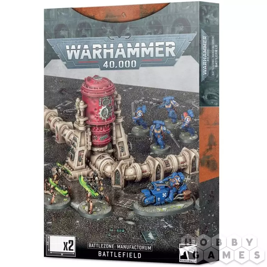 Набор картонных полей Боевая зона: Поле битвы Мануфакторум (Battlezone: Manufactorum Battlefield) – то, что вам нужно для проведения игр Warhammer 40,000. Внутри вы найдёте два картонных поля размером 30 на 22,4 дюйма (76 на 56,8 см.), которые великолепно подходят для малых и средних игр. Добавив второй комплект, вы сможете играть большие турнирные партии.