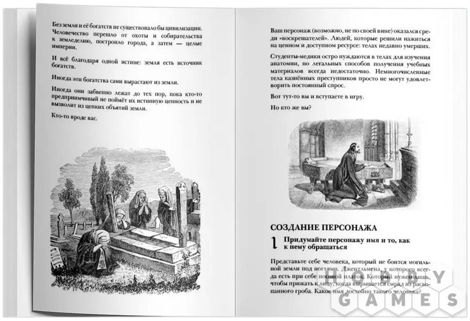 Беда не приходит одна, а в тяжёлые времена и подавно. Именно поэтому вы теперь в рядах "воскрешателей" – так называют леди и джентльменов сомнительной репутации, которые решили, что тела умерших – слишком ценный ресурс, чтобы лежать без дела. Цинично? Возможно. Но с кем не бывает? Такое может случиться с компанией из 2–5 игроков и ведущего, готовых идти сквозь тернии к звёздам... или к покойникам – это уж как карта ляжет. Вас ждут мрачные склепы, погони от потустороннего и щедрые вознаграждения от личностей, которым лучше на глаза не попадаться. Ну не работа, а просто песня!