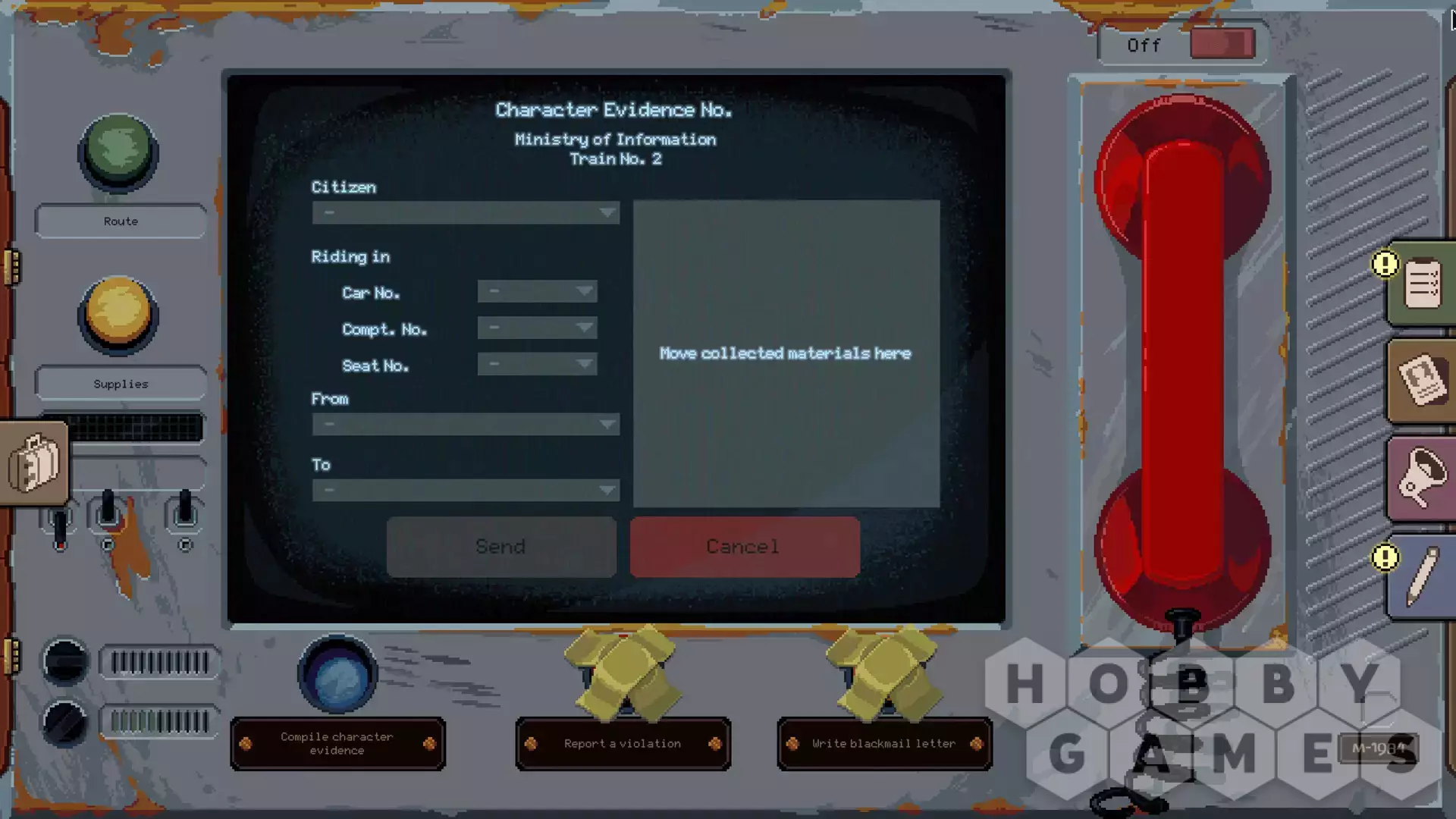 Получите пропуск в вагон-ресторан или VIP-купе и вагоны, где путешествуют высшие чины и крупные промышленники. Следите за своими коллегами и докладывайте о получении взяток или провозе товаров из запретного списка. Министерство не оставит вашу преданность незамеченной.