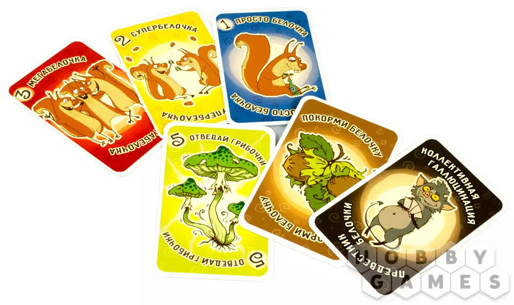 Карта «Грибочки» — эта карта позволяет не брать карту «белочки», когда этого требуют правила. «Грибочки» сбрасываются, а новым претендентом на получение «белочки» становится следующий по приоритету игрок
