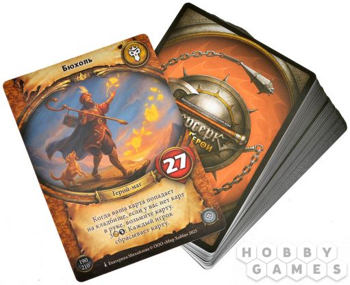 Весь игровой процесс, как вы уже поняли, строится на картах. В своей колоде вы должны иметь одну карту героя, которая является вашим альтер эго в игре, обладает определённым запасом жизни, способностью и стихией. Всего стихий пять: степи, горы, лес, болота, тьма. Карты без стихии – нейтральные. Помимо карты героя, в колоде вы можете иметь от 40 карт той стихии, к которой принадлежит ваш герой, но не более трёх копий одной и той же карты.