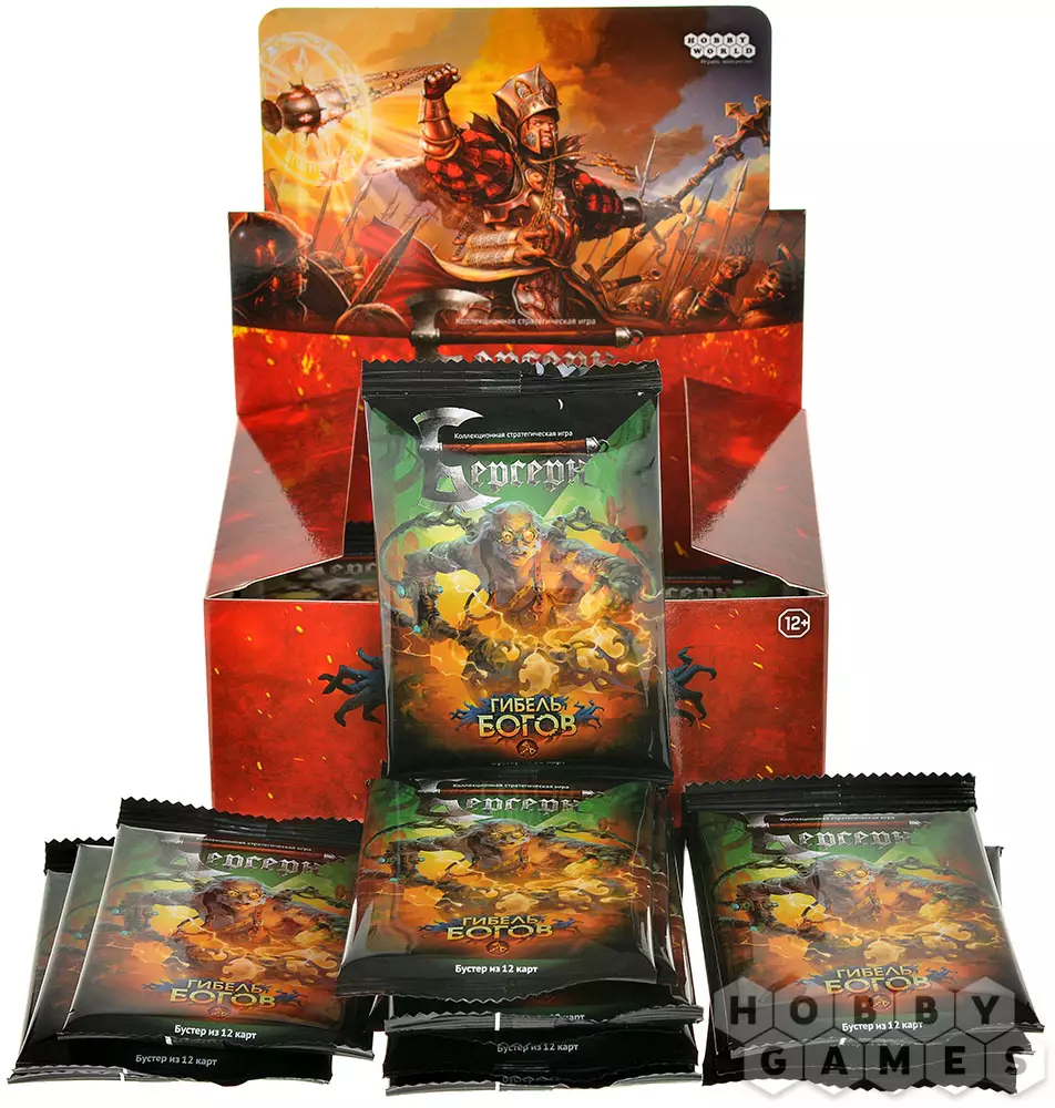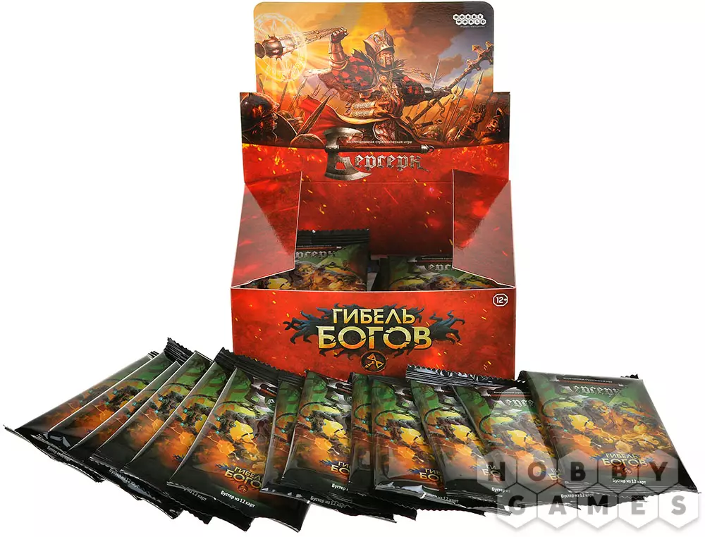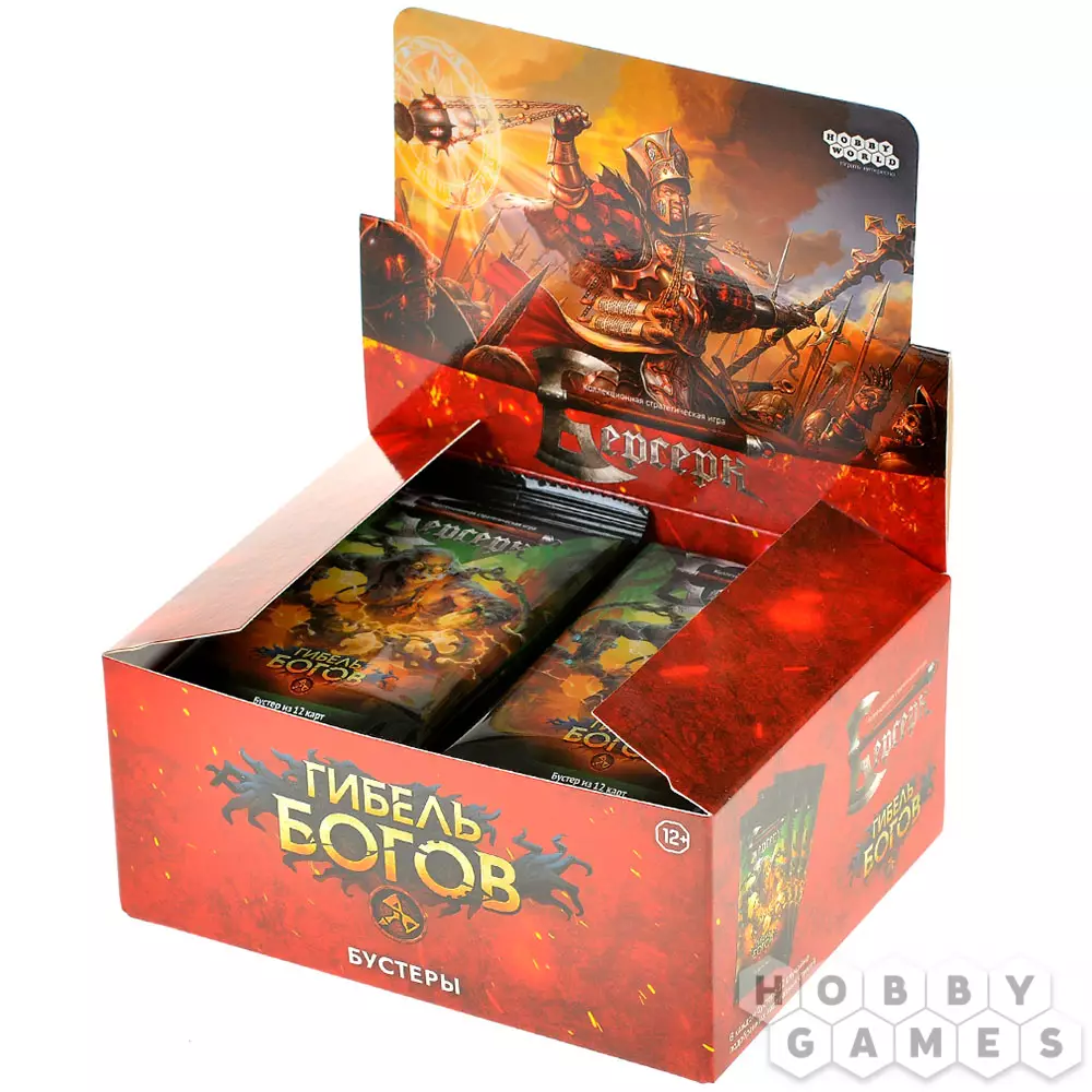 В дисплеях "Гибели богов" содержится 24 бустера по 12 карт каждый, из которых 1 бустер с фойловой ультраредкой картой, 3 бустера с ультраредкими картами, 6 бустеров с фойловыми редкими картами и 14 бустеров с редкими картами.
