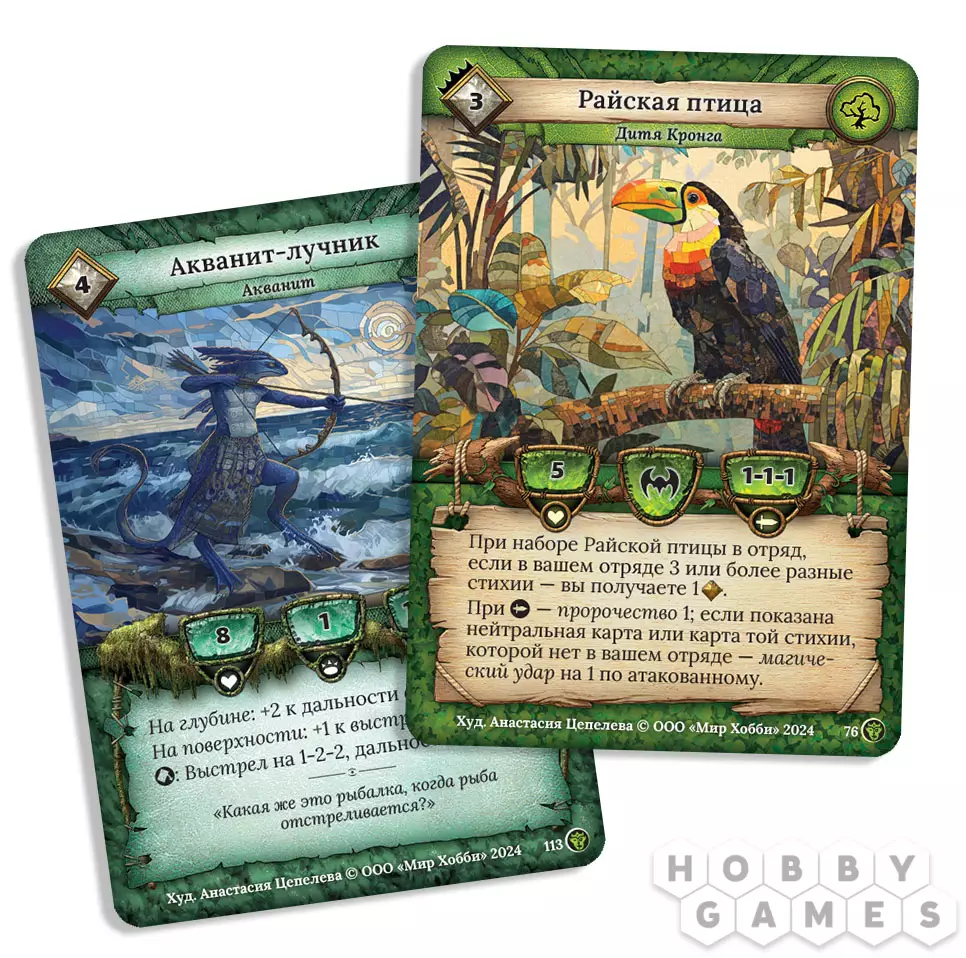 Размер карт: 63x89 мм (рекомендуются протекторы из данного раздела, 288 шт.)