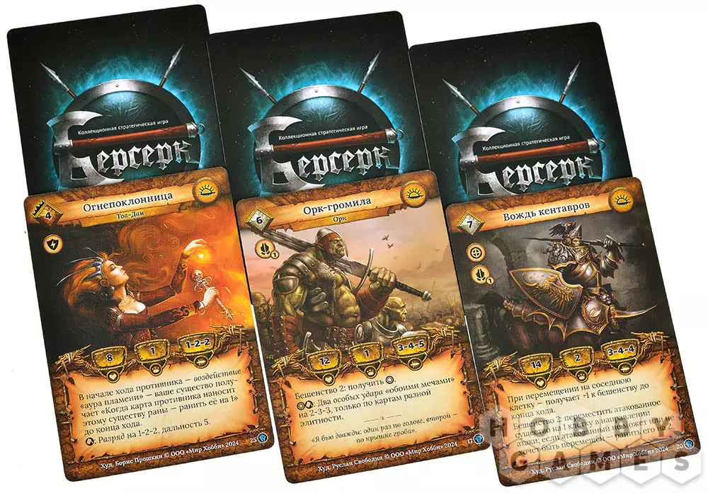 "Берсерк" – это дуэльная карточная игра, в которой вы будете командовать могучими воинами, овладевать силой стихий и соревноваться в тактическом мастерстве. Каждый игрок обладает собственной колодой – она содержит от 30 до 50 карт. Вы можете как воспользоваться готовой колодой из стартового набора, так и создать собственную с помощью бустеров.