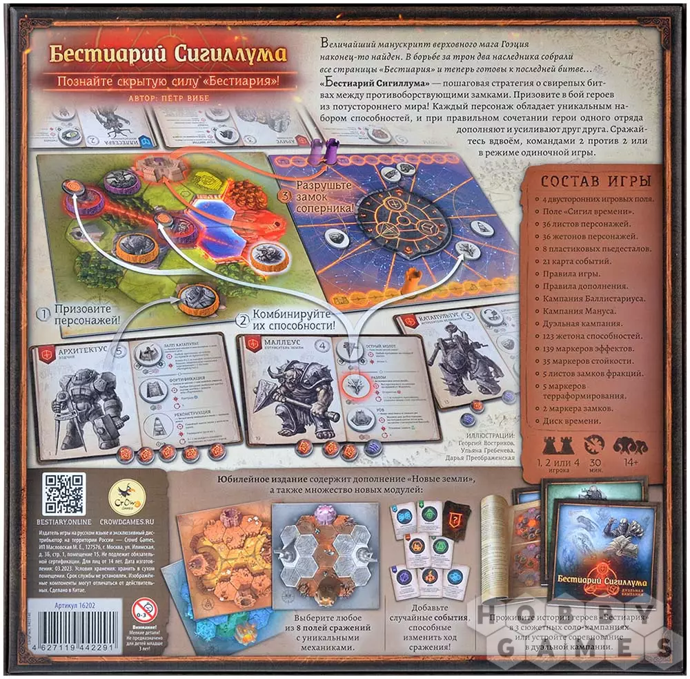 В игре "Бестиарий Сигиллума" вы станете призывателями в королевстве Двух замков. Вам предстоит командовать отрядами легендарных персонажей, соревнуясь в стратегическом планировании. Вы будете повелевать бессмертными сущностями из потустороннего мира и бороться за контроль над катапультными башнями, чтобы обрушивать их огонь на замок соперника. Для победы необходимо не только продумывать свои ходы, учитывая решения вашего соперника, но и с умом подбирать персонажей в свой отряд, обращая внимание на их сильные и слабые стороны.