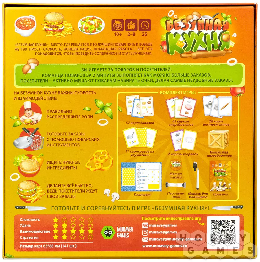 Легко ли быть командой поваров ресторана и выполнять заказы требовательных посетителей? В настольной игре "Безумная кухня" вам предоставится возможность попробовать себя как в роли поваров, так и посетителей.