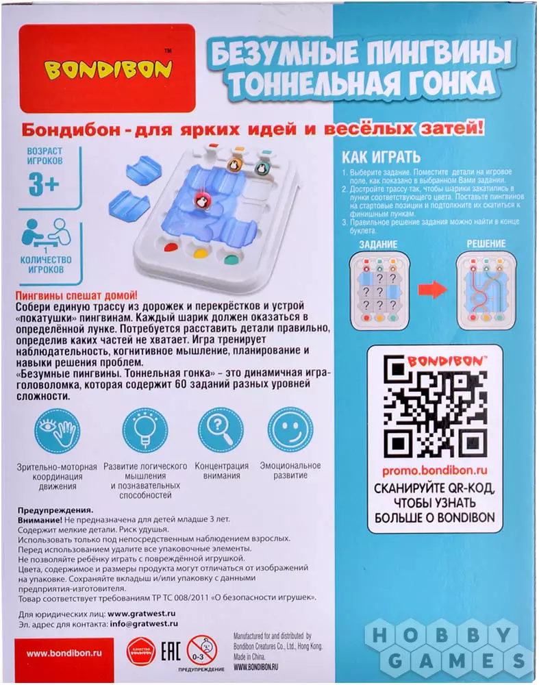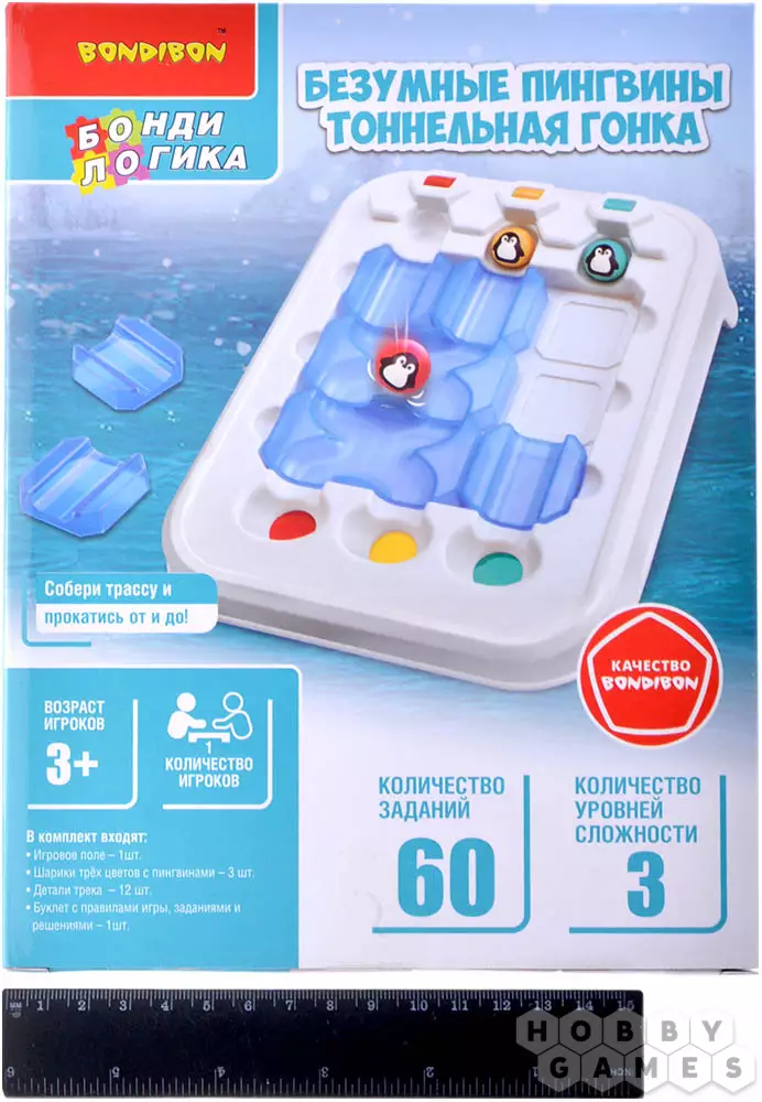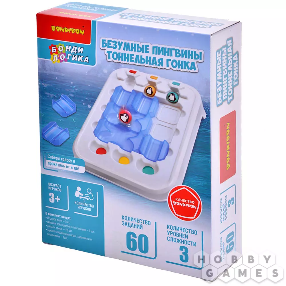 В игре-головоломке "Безумные пингвины. Тоннельная гонка" задача игрока – составить трассу для трёх пингвинов, чтобы те смогли скатиться в соответствующие лунки. В комплект включены 60 заданий разных уровней сложности, так что ребёнок точно не заскучает, выстраивая тоннели из перекрёсток и дорожек! Игра тренирует умение планировать и замечать детали, развивает когнитивное мышление и навыки решения проблем.