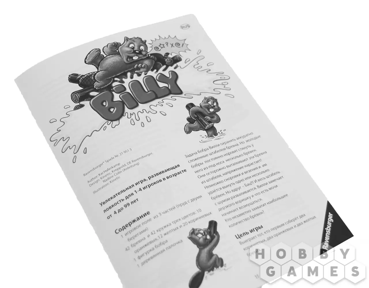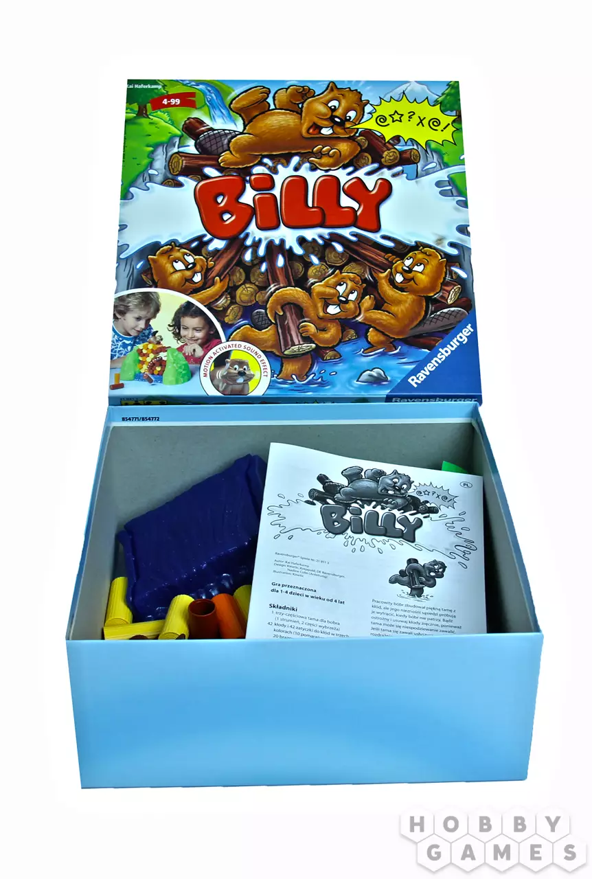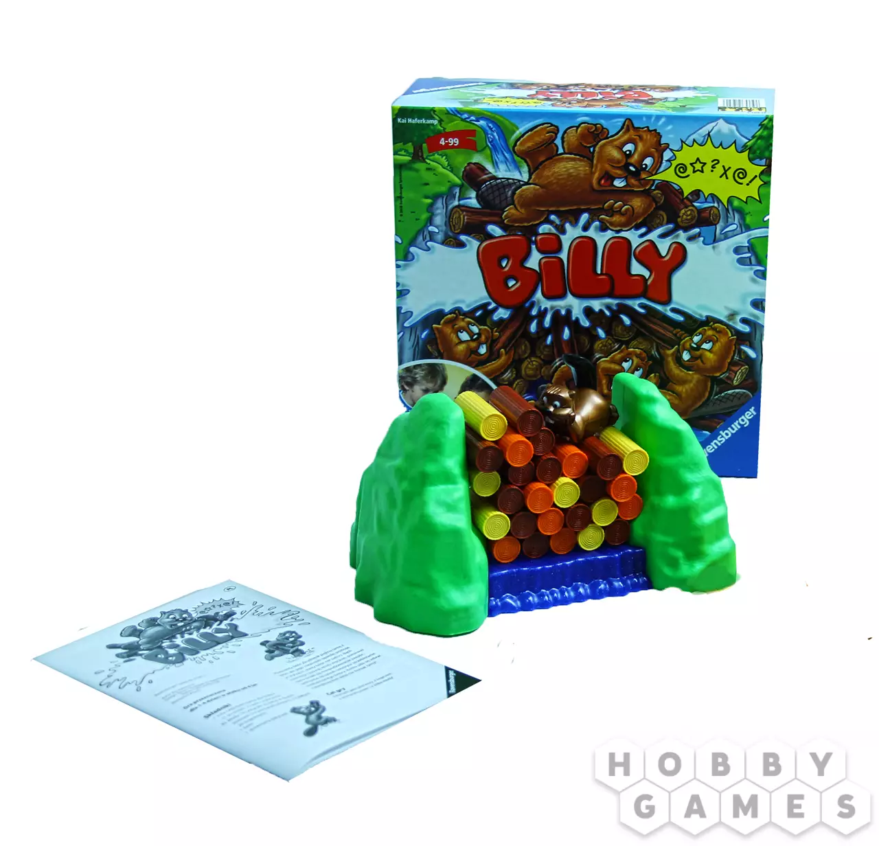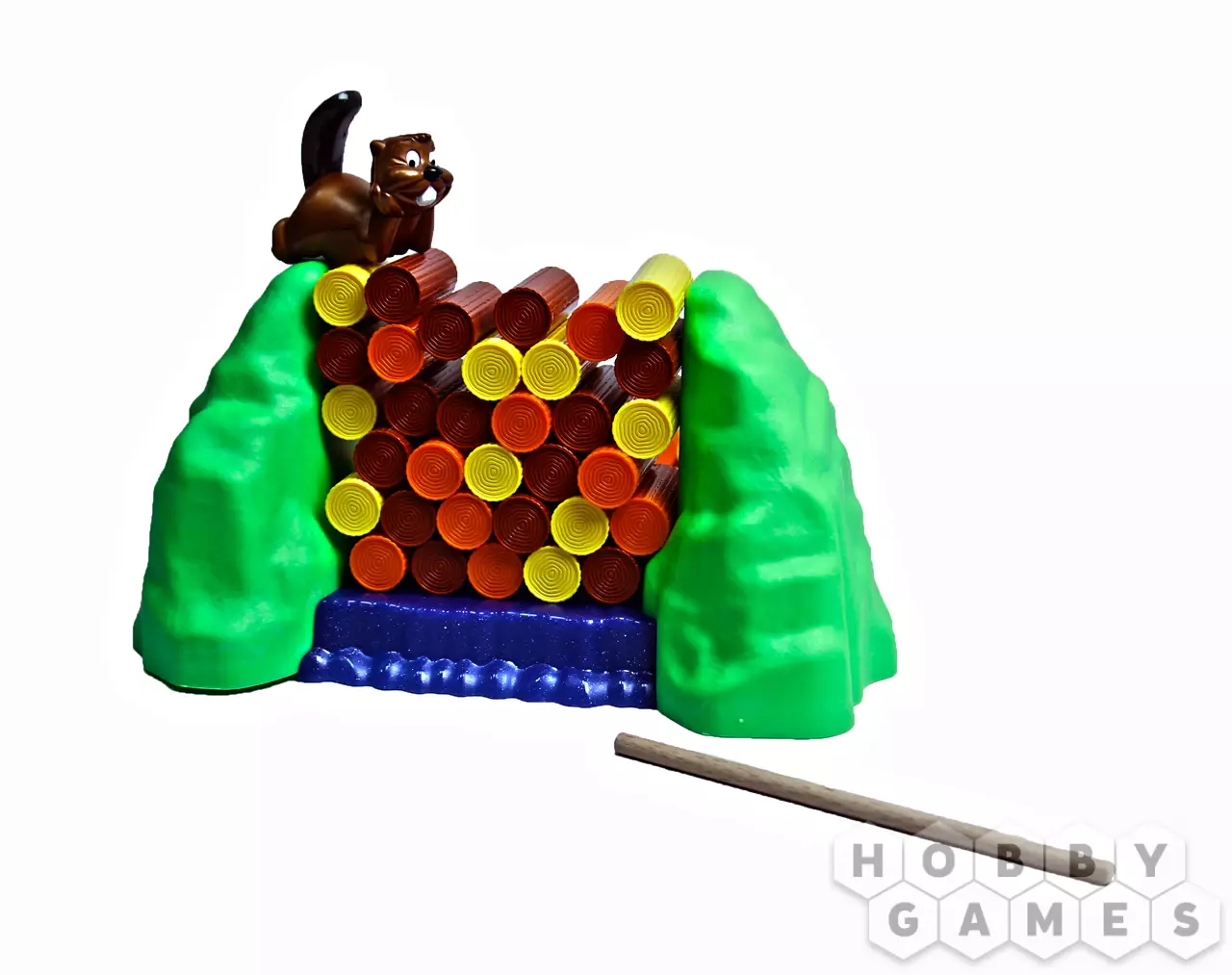 Игра отлично развивает моторику и ловкость, игрокам предстоит с помощью небольшого шеста выдвигать брёвнышки из плотины и первым собрать по 2 брёвнышка каждого цвета. Но будьте аккуратны – одно неверное движения и вся плотина рухнет, а Билли будет очень зол!