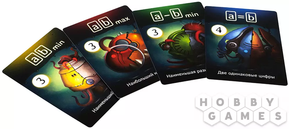 Первым делом следует заполнить цифрами ячейки в верхней части игровых формуляров. Для этого ведущий бросает десятигранный кубик, входящий в комплект, и громко объявляет выпавшие цифры, ну или же за него всё это сделает Маруся. Игроки послушно вписывают эти цифры себе, причём делать это можно абсолютно в произвольном порядке, самое главное – чтобы у всех в результате на формулярах красовались по восемь двузначных номеров.