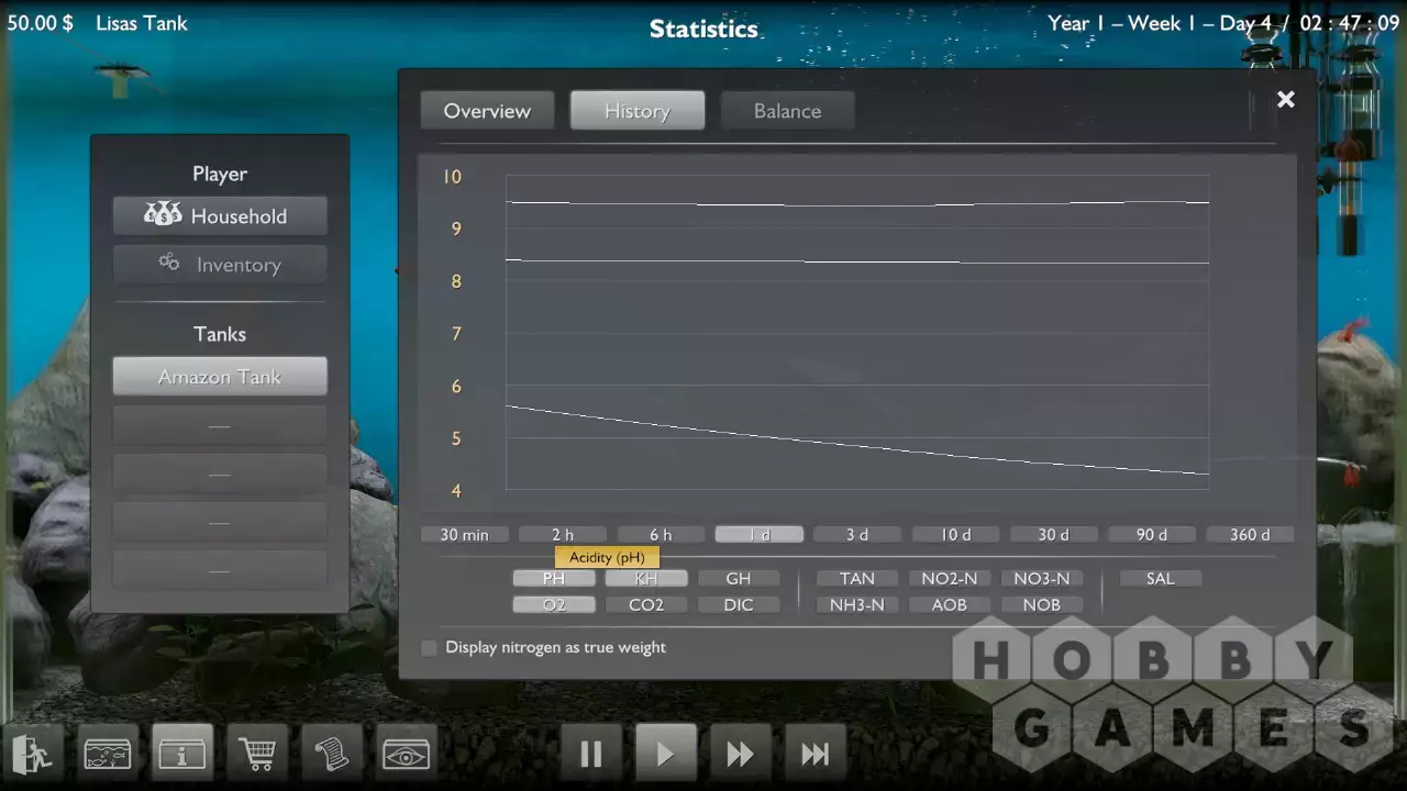 Biotope реально моделирует химические и биологические параметры. Следите за такими значениями, как температура, pH, карбонатная жесткость, нитраты и аммиак, чтобы ваш аквариум обеспечивал идеальные условия жизни для вашей рыбы.