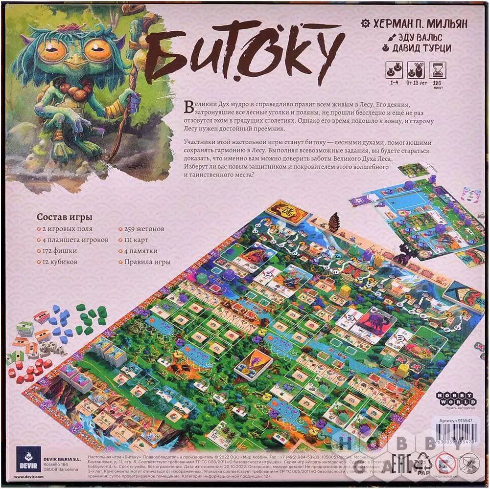 В настольной игре "Битоку" вам предстоит стать одноимёнными лесными духами, задачей которых является сохранение гармонии и спокойствия в Лесу. В ходе этой задачи вы будете выполнять различные задания, чтобы доказать обитателям Леса, что именно вы достойный преемник Великого Духа и готовы возложить на себя его заботы и обязанности. Но выберут ли духовные создания вас новым покровителем Леса или нет, зависит только от ваших упорств и стараний.