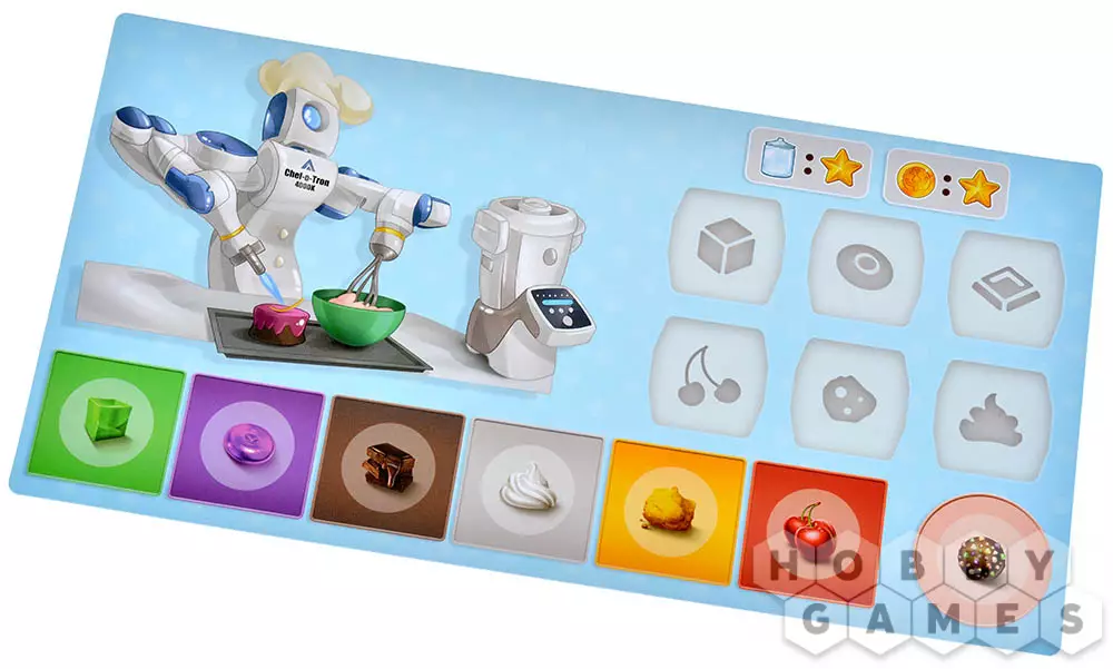 "Битва десертов: Конкурс кондитеров" – это семейная настольная игра, в которой вы примерите на себя роль кондитеров. Вашей задаче будет приготовление десертов, и чем их будет больше, тем выше ваши шансы на победу, ведь каждый завершённый рецепт приносит вам победные очки. У каждого игрока есть личный планшет, представляющий стол для готовки. На нём хранятся выбранные вами ингредиенты, которые вы будете использовать для приготовления десертов. Но их количество будет ограничено, ведь нельзя же занимать ими всю рабочую область! Подходите к выбору составляющих с умом, чтобы вам точно хватило на десерт и не осталось излишков – зачем им занимать ваше рабочее место?
