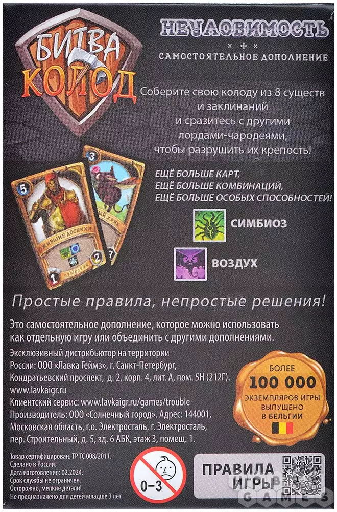 Размер карт: 56x87 мм (рекомендуются протекторы из данного раздела, 36 шт.)
