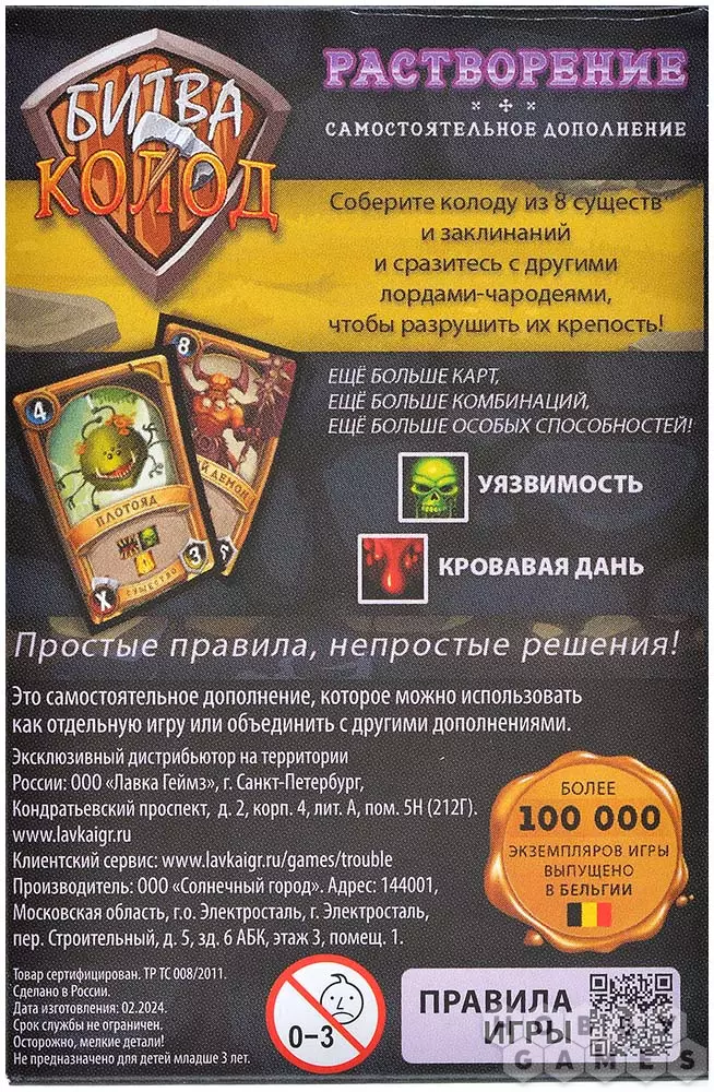 Размер карт: 56x87 мм (рекомендуются протекторы из данного раздела, 36 шт.)