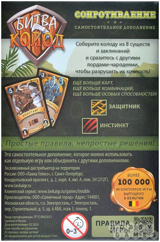 Размер карт: 56x87 мм (рекомендуются протекторы из данного раздела, 36 шт.)