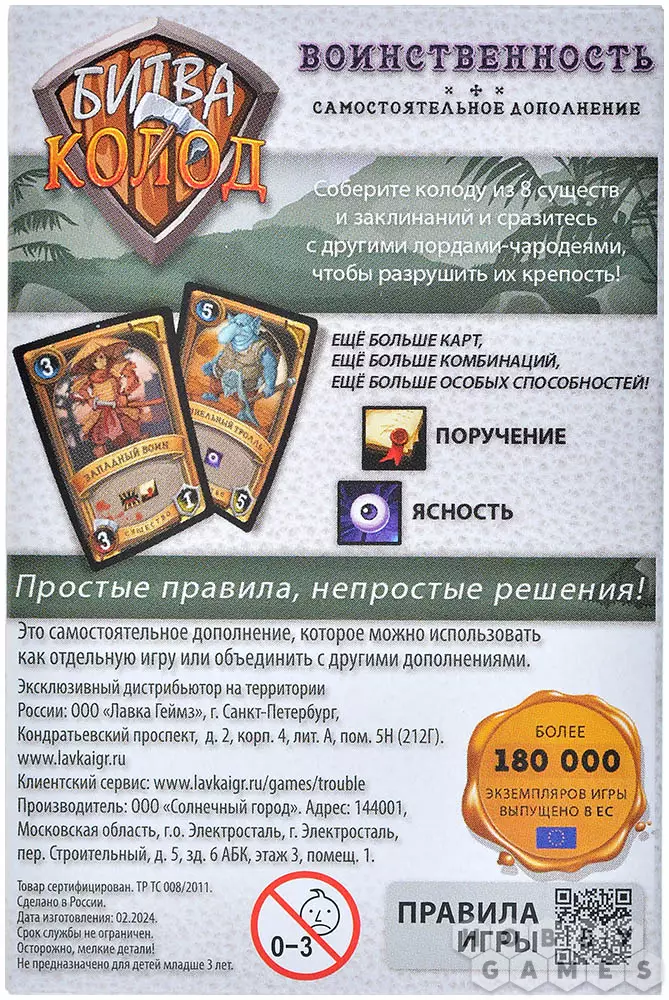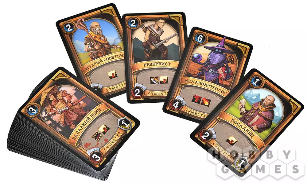 Размер карт: 56x87 мм (рекомендуются протекторы из данного раздела, 36 шт.)