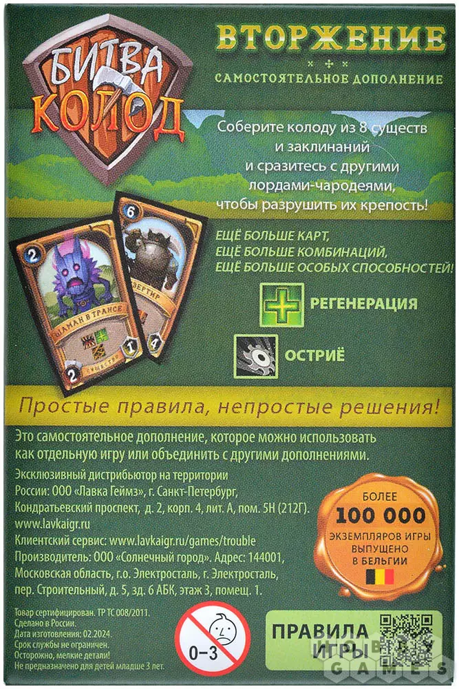 Размер карт: 56x87 мм (рекомендуются протекторы из данного раздела, 36 шт.)