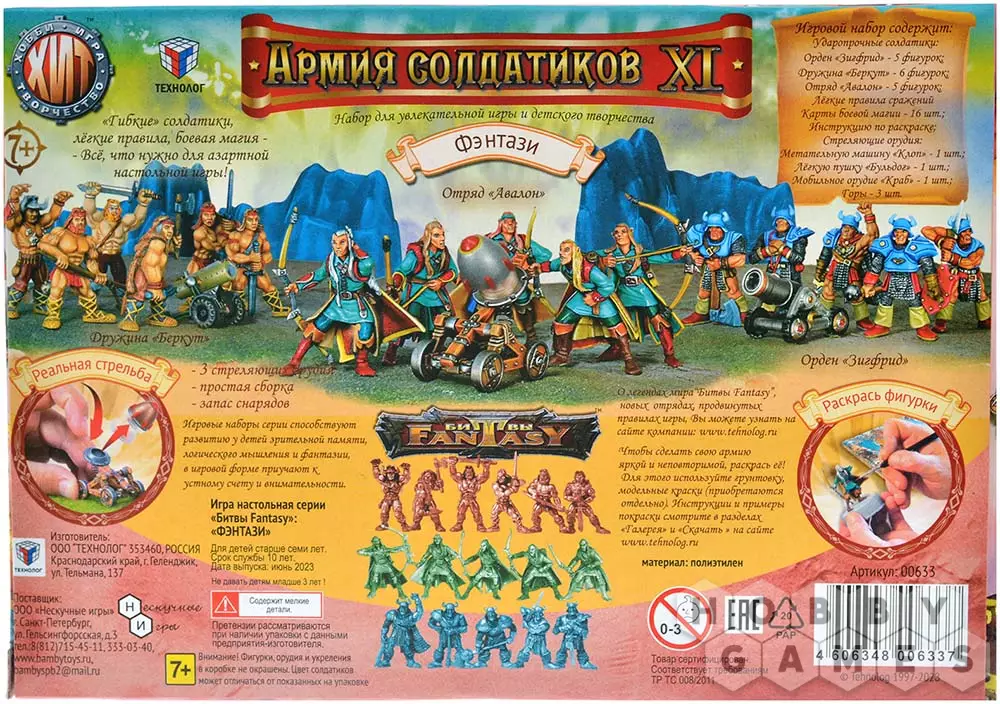 Всё это – боевая система "Битвы Fantasy" от российской компании "Технолог"! Составьте свой отряд из представителей любых классов и рас, сдобрите его пушками и сойдитесь в эпичной битве со своими друзьями! Каждый набор серии включает в себя миниатюры отрядов и армлистов, которые содержат в себе всю необходимую информацию. Можно приобрести пару коробок с армиями солдатиков и этого уже будет достаточно для жарких столкновений. Но если вы хотите по-настоящему эпичных сражений, то обратите внимание на наборы с крепостями: вы сможете собрать из них любое поле битвы!