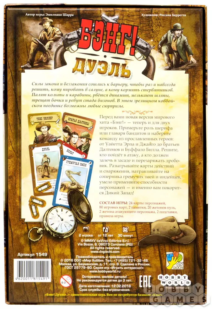 "Бэнг! Дуэль" – это самостоятельная игра, принадлежащая серии настольных игр "Бэнг". Оригинальная игра не потребуется.