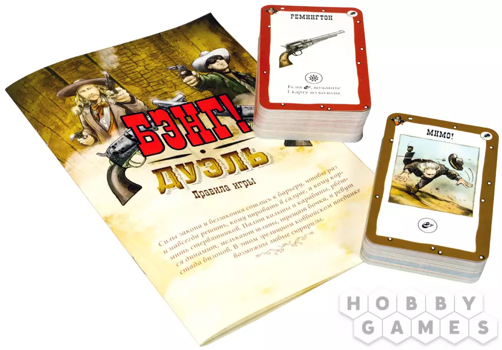 Fetstrot17.02.2020 14:17Довольно хорошая настольная игра для двоих. Сложнее оригинального бэнга за счёт механики ап и пп. Также перерисованы карты и другие механики, но игра понравилась, советую.