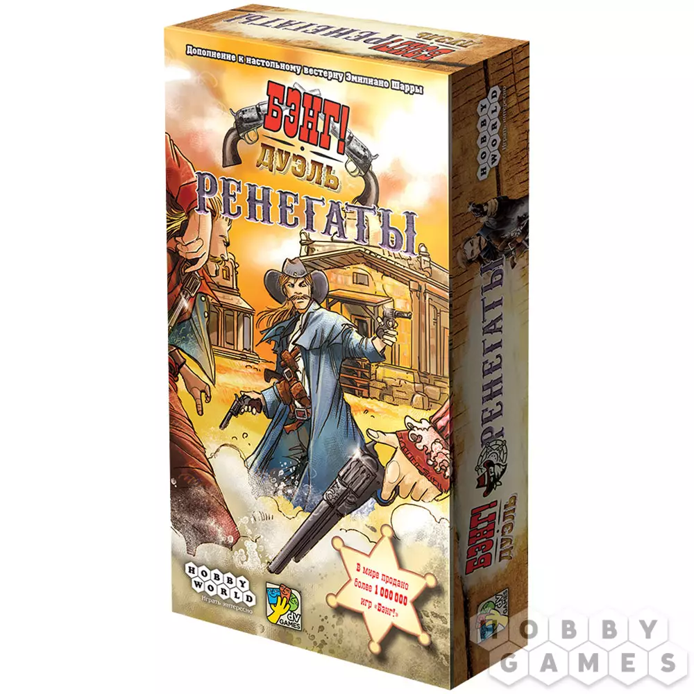 "Бэнг! Дуэль: Ренегаты" добавляет в игру новую группу стрелков – отъявленных головорезов – ренегатов. При игре вдвоём, они могут выступать как на стороне служителей закона, так и на стороне бандитов. А новые режимы дополнения позволяют расширить игру до трёх участников и сделать ренегатов отдельной группировкой, преследующей личные цели. Противостоять же новым стрелкам поможет оружие на новых картах ресурсов. Ещё никогда мексиканская дуэль не была такой жаркой!
