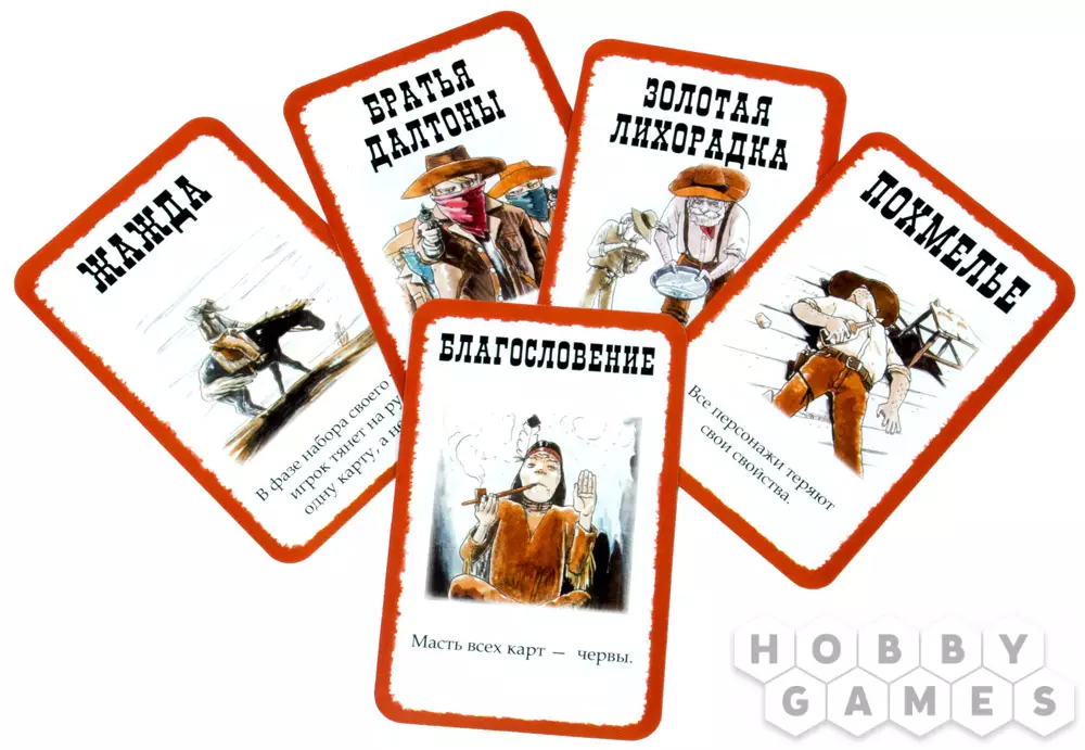 2. Перед своим вторым ходом Шериф тянет верхнюю карту колоды событий, читает её вслух и кладёт в центр стола, вводя её действия в игру. Так будет происходить до последней карты, действие которой уже останется до конца партии.