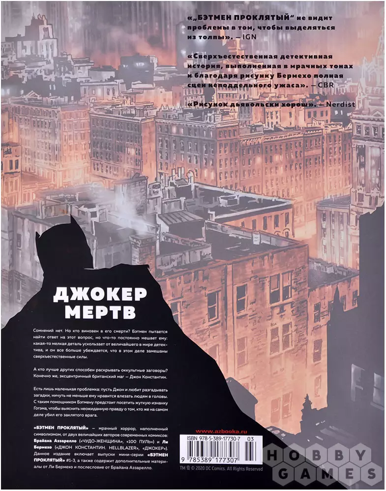 И вот, Джокер мёртв. Бэтмену ничего не остаётся, кроме как разобраться в произошедшем – только вот полная картина никак не складывается. Расследование выходит за привычные рамки: в деле замешано нечто сверхъестественное… Приходится объединиться с другим детективом – эксцентричным оккультистом Джоном Константином. Только вот готов ли Бэтмен к кошмарной правде, что скрыта за саваном неизведанного?..