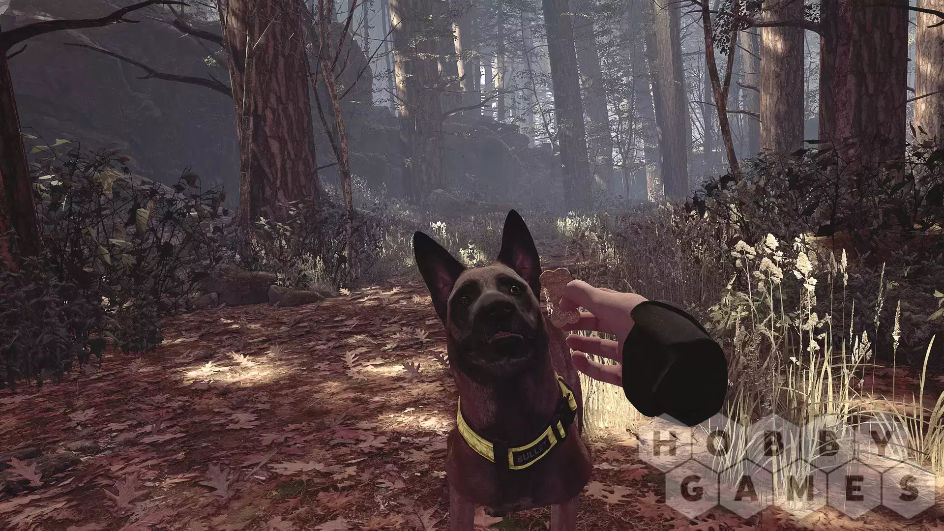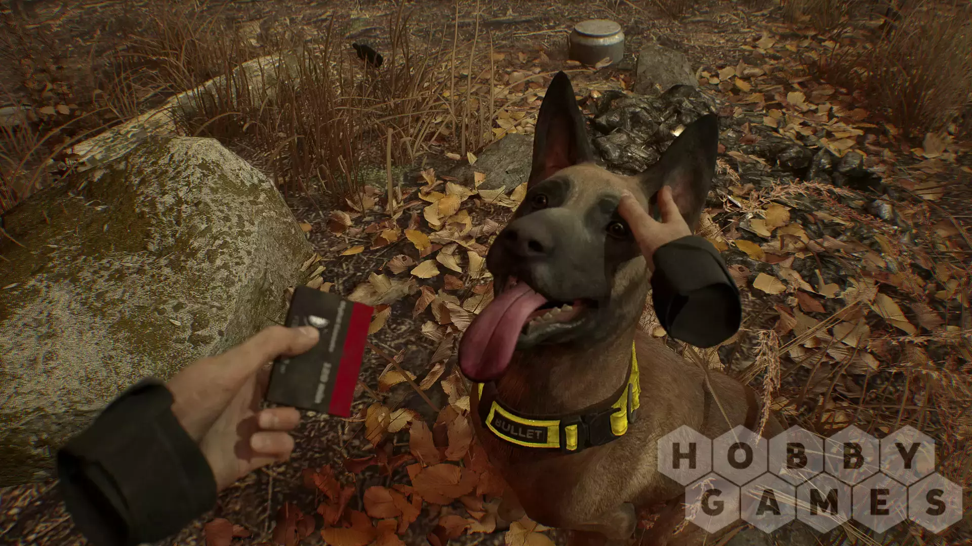 You're not going in alone: you have your trusty canine sidekick, Bullet, by your side. You can encourage him with treats, or discipline him for wandering off - but know that how you choose to treat him affects your story.