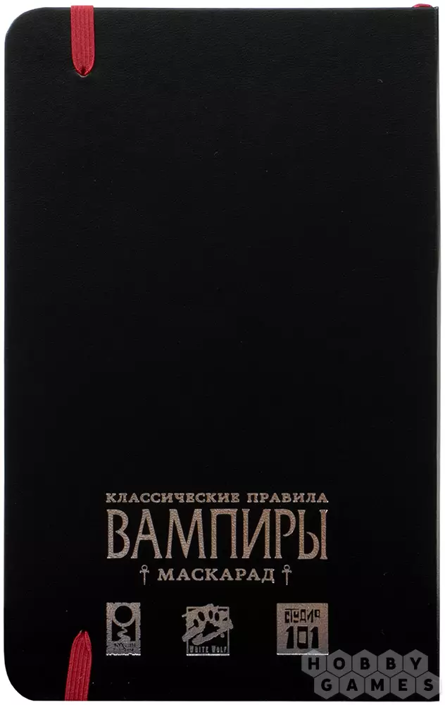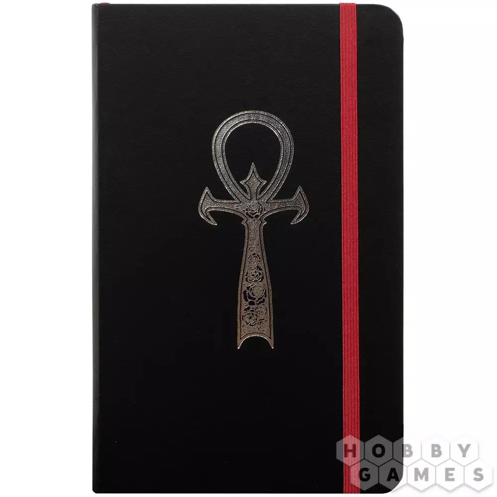 Этот блокнот в стиле "молескин" с чистыми листами из плотной бумаги, ляссе и резинкой идеально подходит для ведения записей и заметок при игре в "Вампиры: Маскарад". На обложке нанесён символ Маскарада, а ещё поговаривают, что какой-то процент с его продаж пойдёт на борьбу с Охотниками (это не точно). И, конечно, такая вещь значительно поднимет ваш статус в клане, неважно, являетесь ли вы загадочным малковианином или ужасающим носферату.