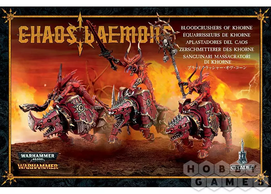 Сочетание свирепого кровотворца и неостановимой давящей туши быкоглавого Джаггернаута Кхорна. Когда демонические легионы идут в бой, орды кроволомов несутся по полю брани, грохочущие копыта равно топчут траву и превращают в месиво врагов Бога Войны. Джаггернауты, или Джаггеры - громадные бронированные твари, частью демоны, а частью - переплетение зачарованной стали и мускулов. Это могучие звери из скрипучего железа и меди, выше человеческого роста и огромного веса. Шкура Джаггера - латы из сваренных металлических чешуек, украшенные метками Кхорна и покрытые засохшей кровью его жертв. Внутри тела демона вместо крови бушует огонь, раздуваемый жаром демонического сердца. Его железные копыта высекают искры при каждом шаге, а бронзовая пасть выдыхает удушливый темный дым. Это чудовище, в котором первобытная ярость заключена в сокрушающее тело из металлических костей и мышц.
