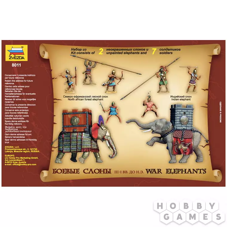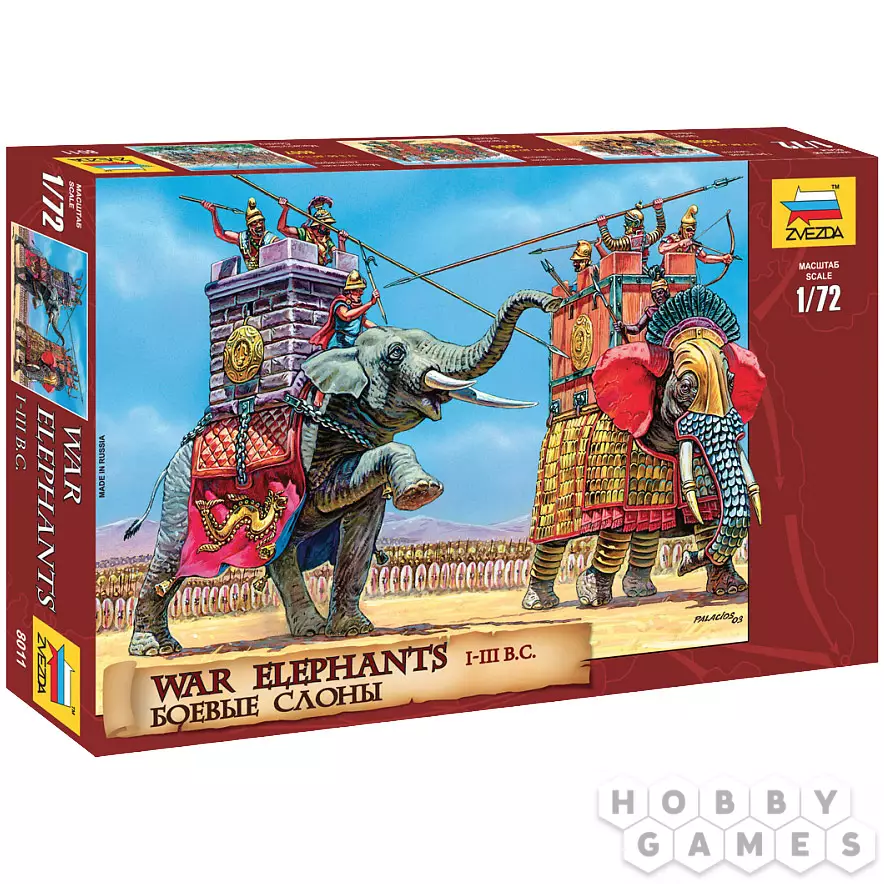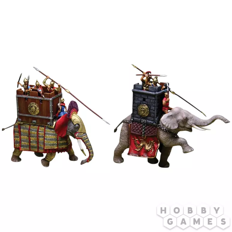 В эпоху античных сражений боевые слоны были настоящей "танковой дивизией" древнего мира. Эти исполины, закованные в доспехи и несущие на спинах укреплённые башни с солдатами, наводили ужас на противников от Индии до Средиземноморья. Набор позволяет воссоздать этих живых "броненосцев" поля боя во всем их грозном величии.