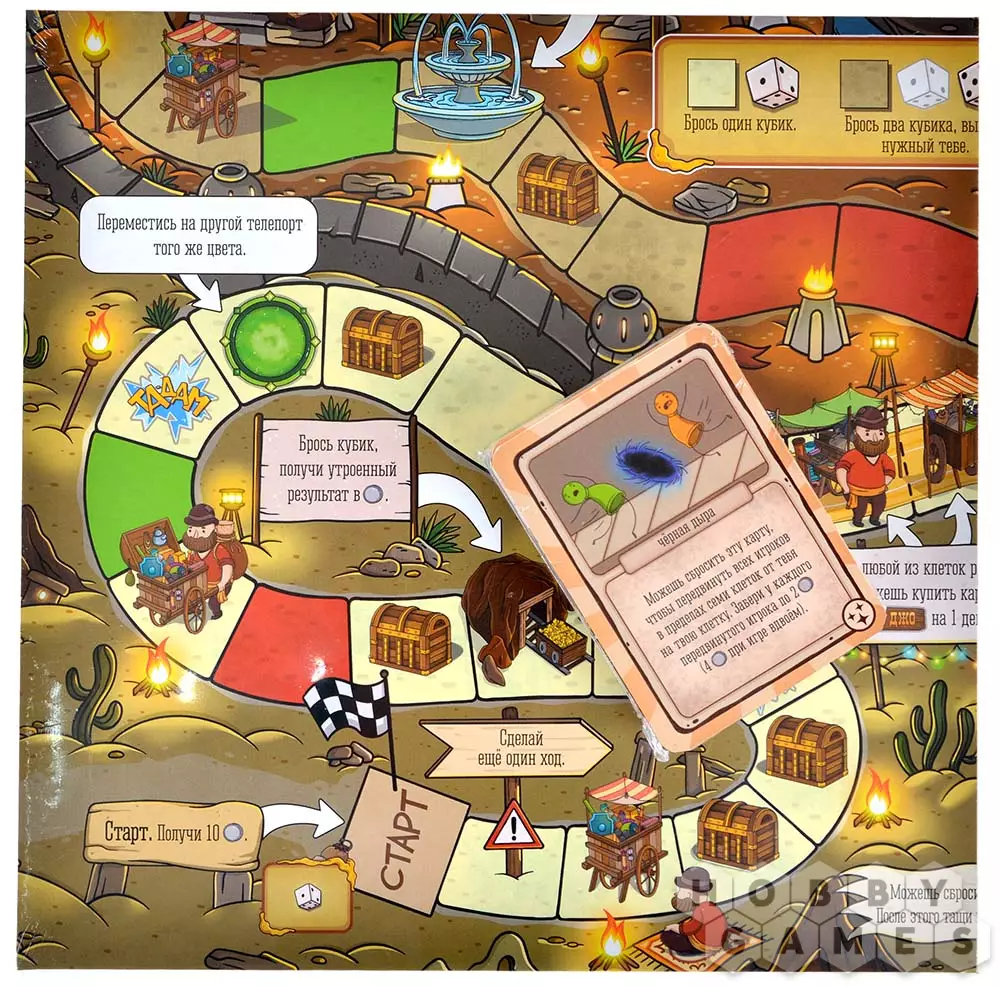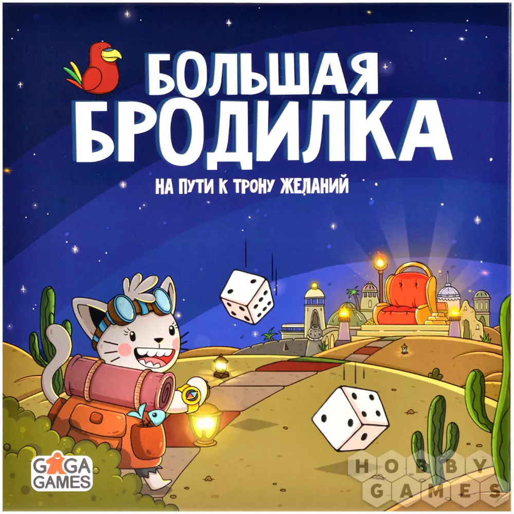 "На пути к трону желаний" – это новая самостоятельная часть знакомой многим настольной гонки "Большая бродилка"! Если вам наскучило вести своего персонажа одной и той же дорогой, а карточки из лавки Джо больше не удивляют, то эта коробка станет вашим спасением! Во-первых, в игре новая карта. Извилистый маршрут со своими ловушками и хитростями не даст вам заскучать. Во-вторых, в комплекте целая куча новых карт: сундуки, "Та-Дам" и "Лавка Джо" удивят и вас, и ваших оппонентов. И, в-третьих, у каждого героя теперь есть свои уникальные способности! Но самое главное, что при всех нововведениях игровой процесс остался всё таким же простым и весёлым! Отправьтесь в новое захватывающее приключение со своими друзьями!