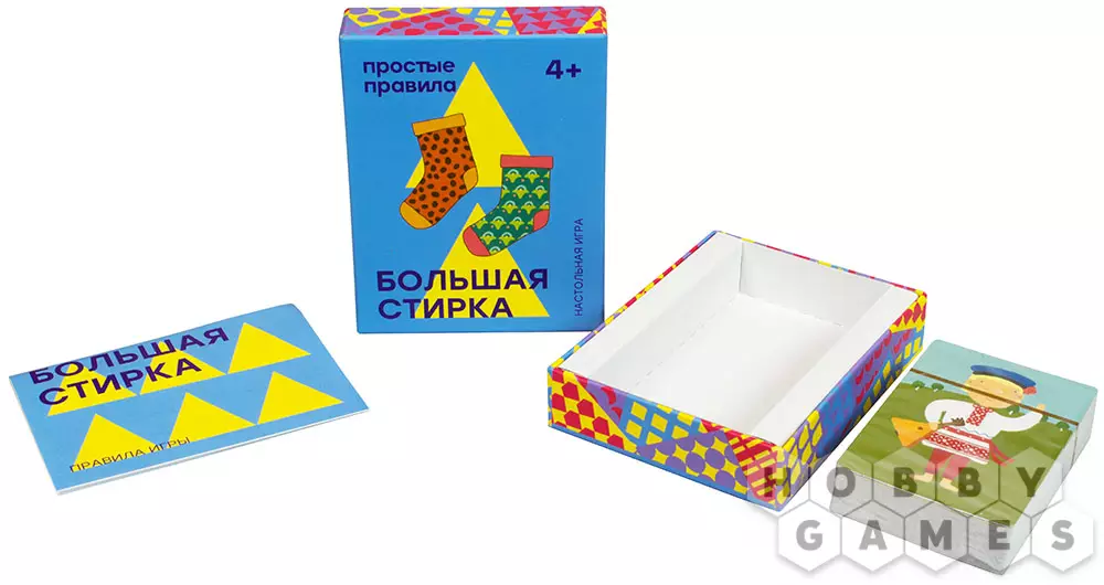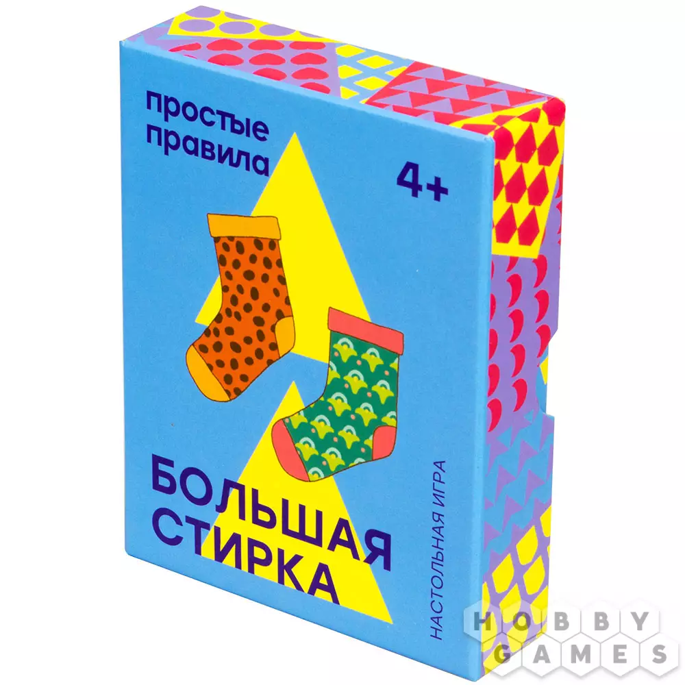 "Большая стирка" – увлекательная и весёлая настольная игра про дружный поиск парных носков. Помогает развивать аналитическое и комбинаторное мышление. Стирка закончилась – начинается игра!