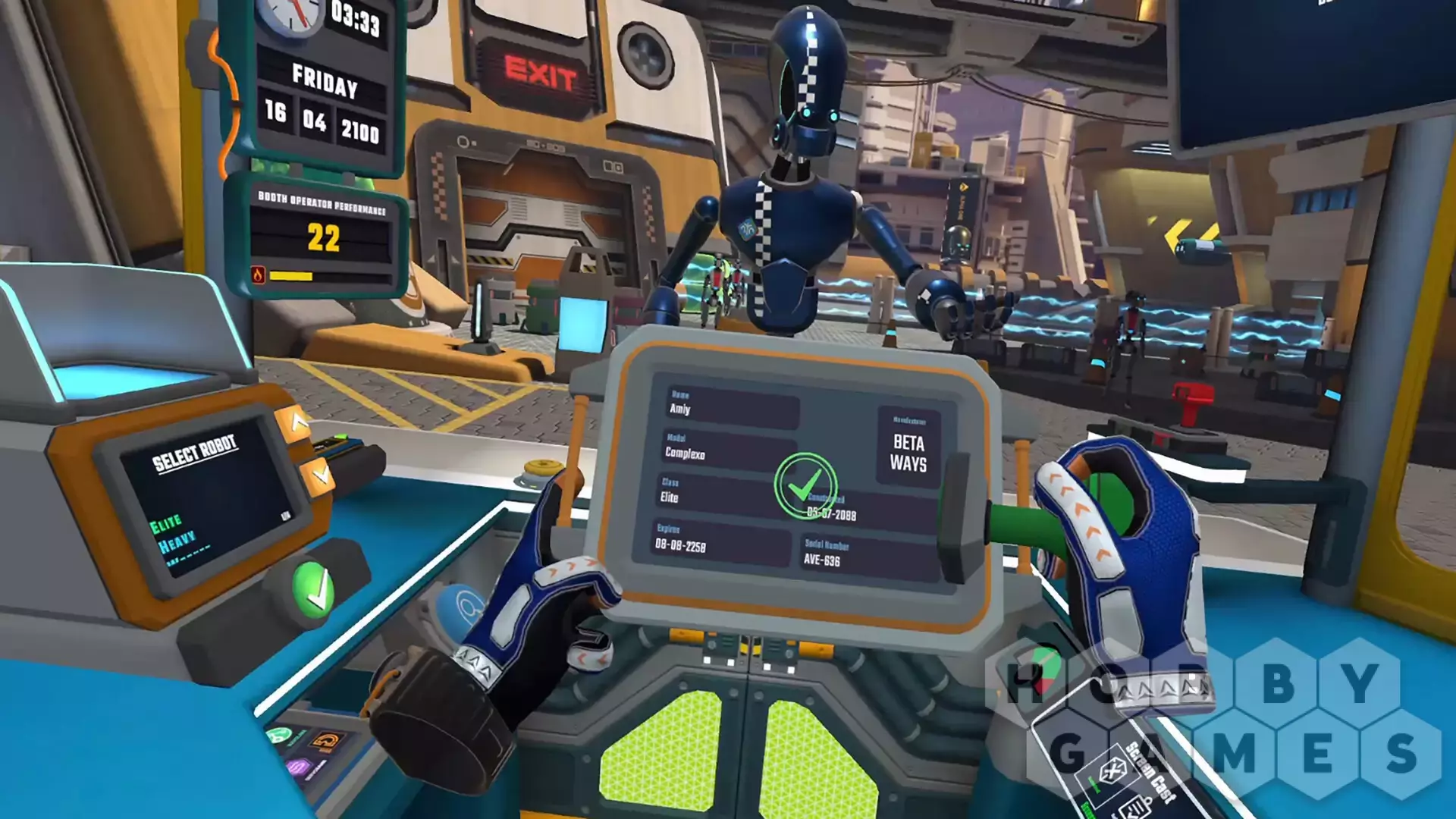 Use a variety of tactile gadgets in VR to examine robots at the booth. You'll need different tools for inspection including a 3D printer, Contraband Detector, Stun Gun, Barcode Scanner and much more.
