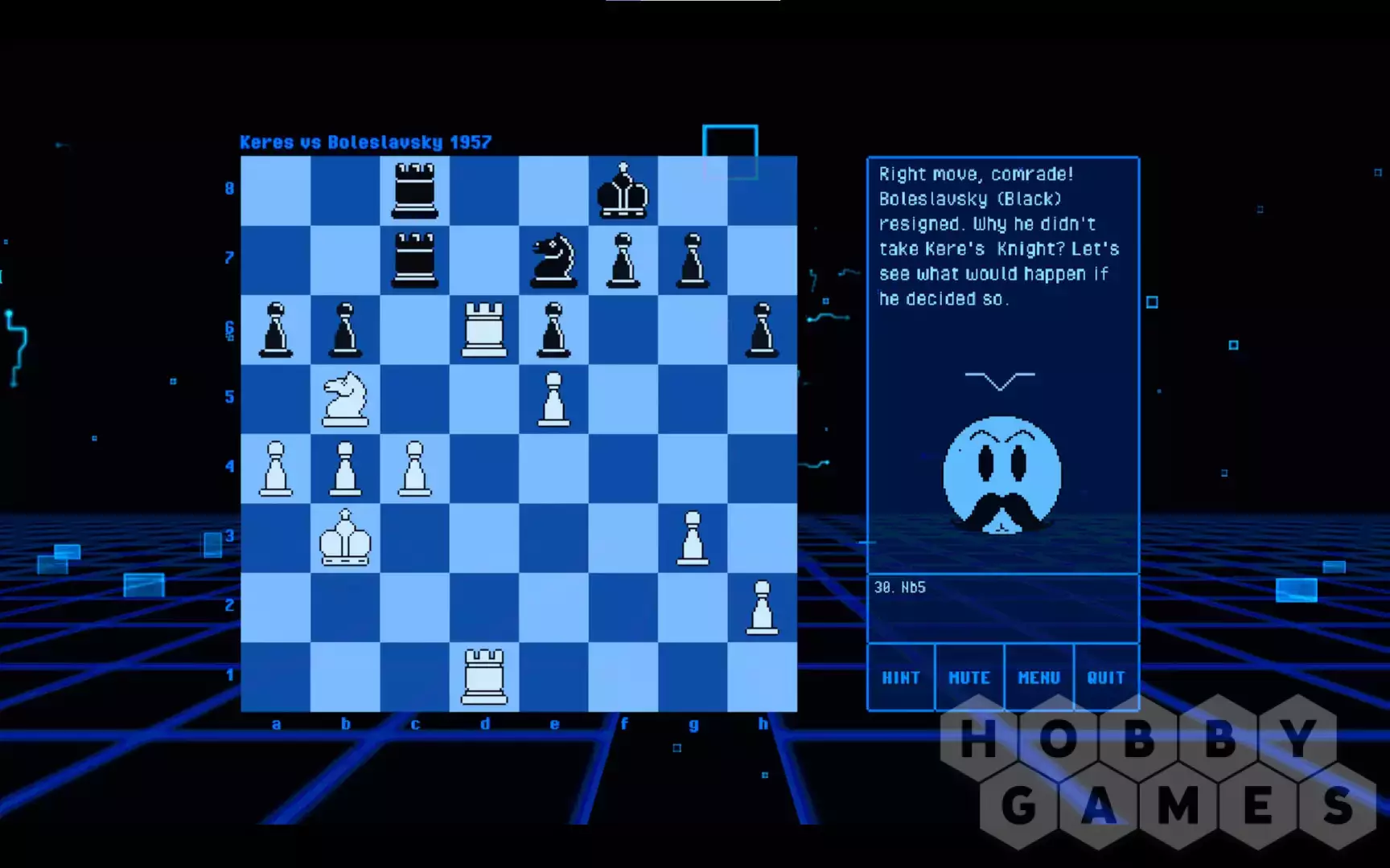 The soviet digital teacher is back! This time he will teach you chess through memorable matches from the mid-century USSR Chess Championships (1940s, and 50s)
