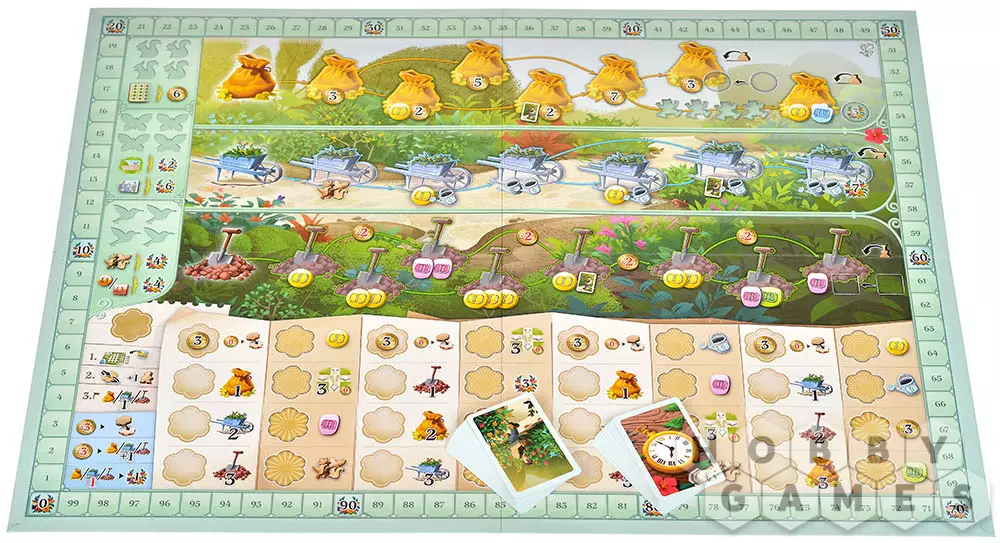 Три этапа игры раскрываются как лепестки цветка. В первом раунде вы закладываете основу своего сада. Когда все участники доходят до края поля, начинается второй раунд – перевёрнутые жетоны действий открывают новые возможности. Финальный этап – это последний шанс проявить мастерство, продвигаясь по счётчикам для получения решающих очков.
