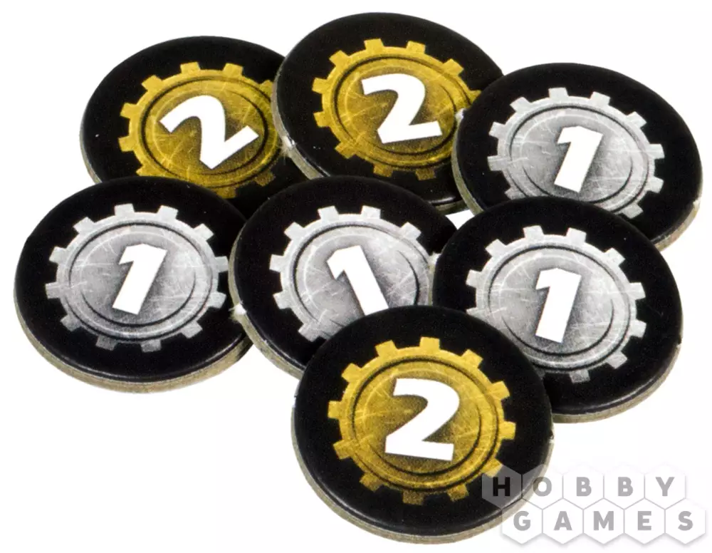 Это полностью карточная игра, которая использует лишь жетоны для подсчёта монет, то есть объединяет в себе компактность и удобство: вы сможете играть где угодно и когда угодно