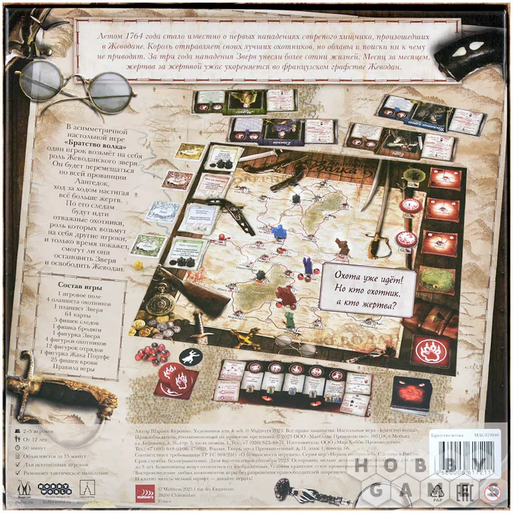 "Братство волка" – это асимметричная настольная игра, в которой один из игроков примет на себя роль Жеводанского зверя, а остальные станут охотниками. Зверь будет перемещаться по всей провинции Лангедок, настигая всё больше жертв и наводя ужас на всю округу. Но подобные бесчинства никогда не остаются незамеченными, поэтому по следу зверя будут идти отважные охотники. Сумеют ли они остановить монстра или станут лишь очередной его жертвой?