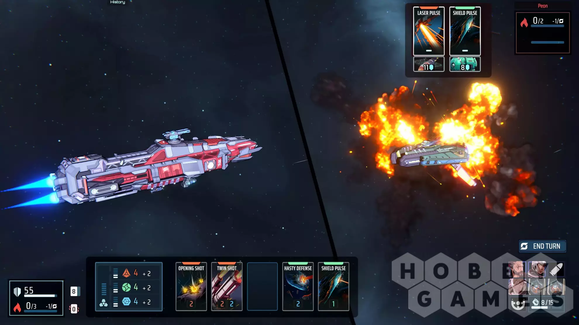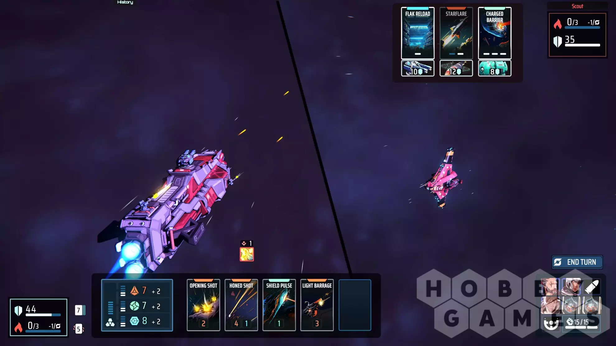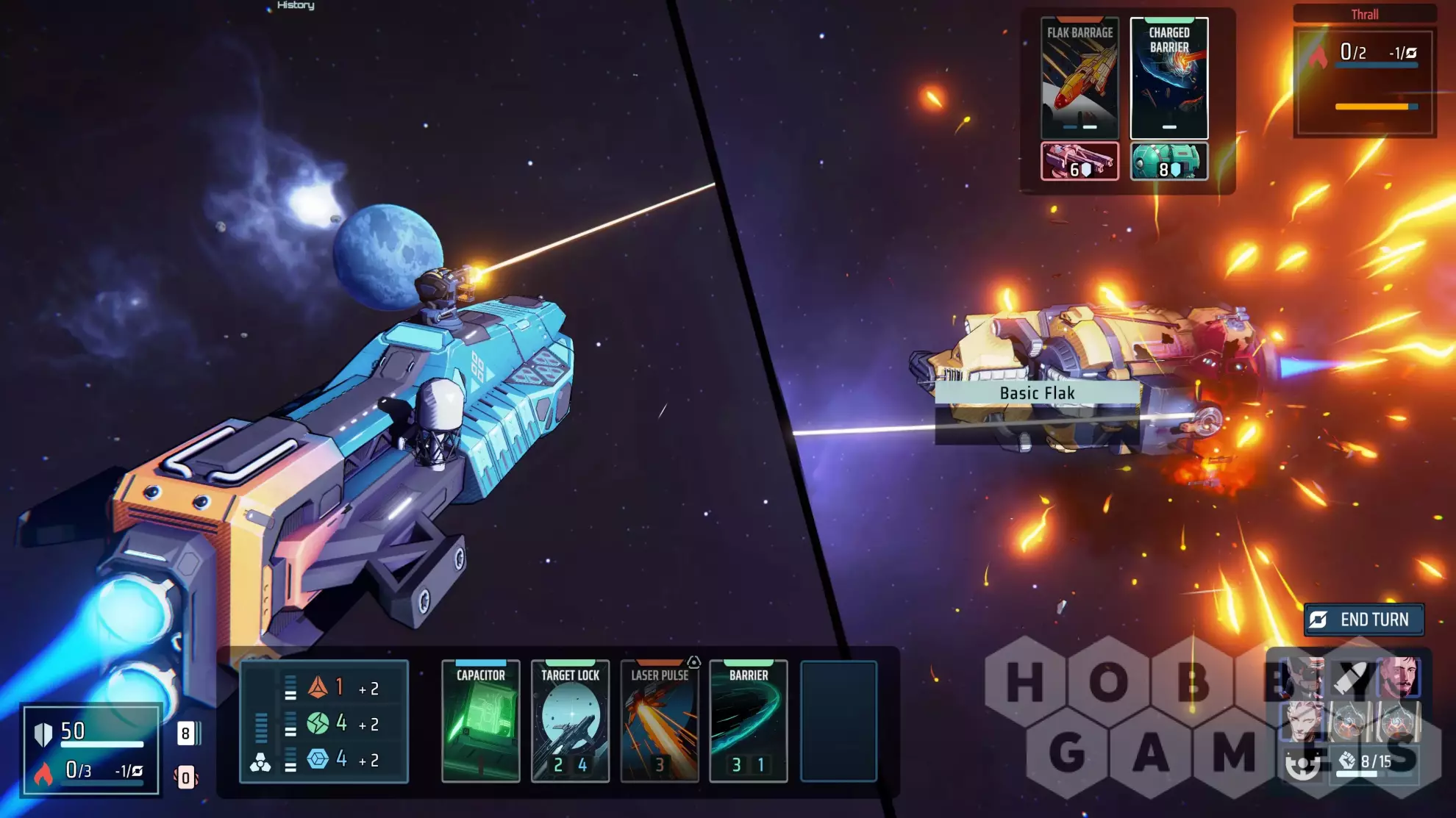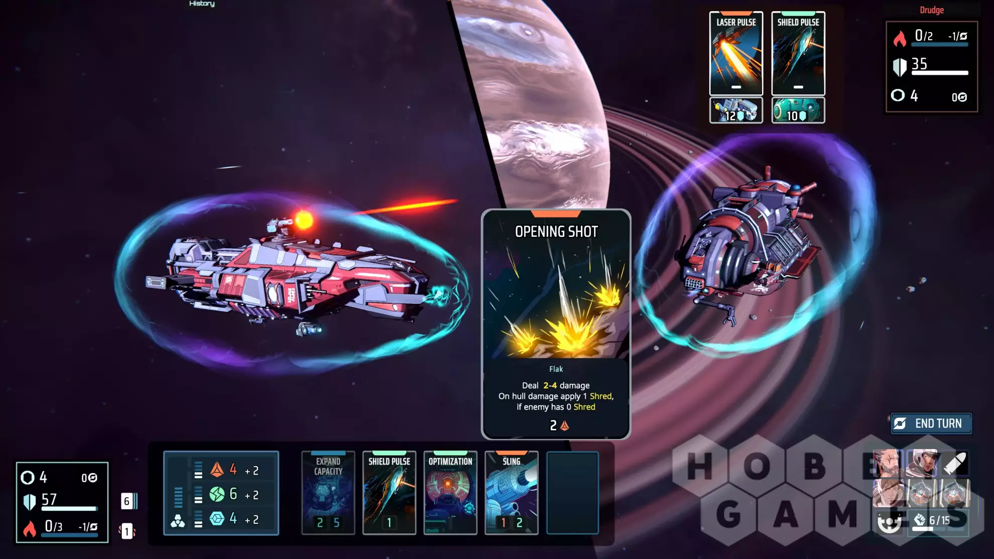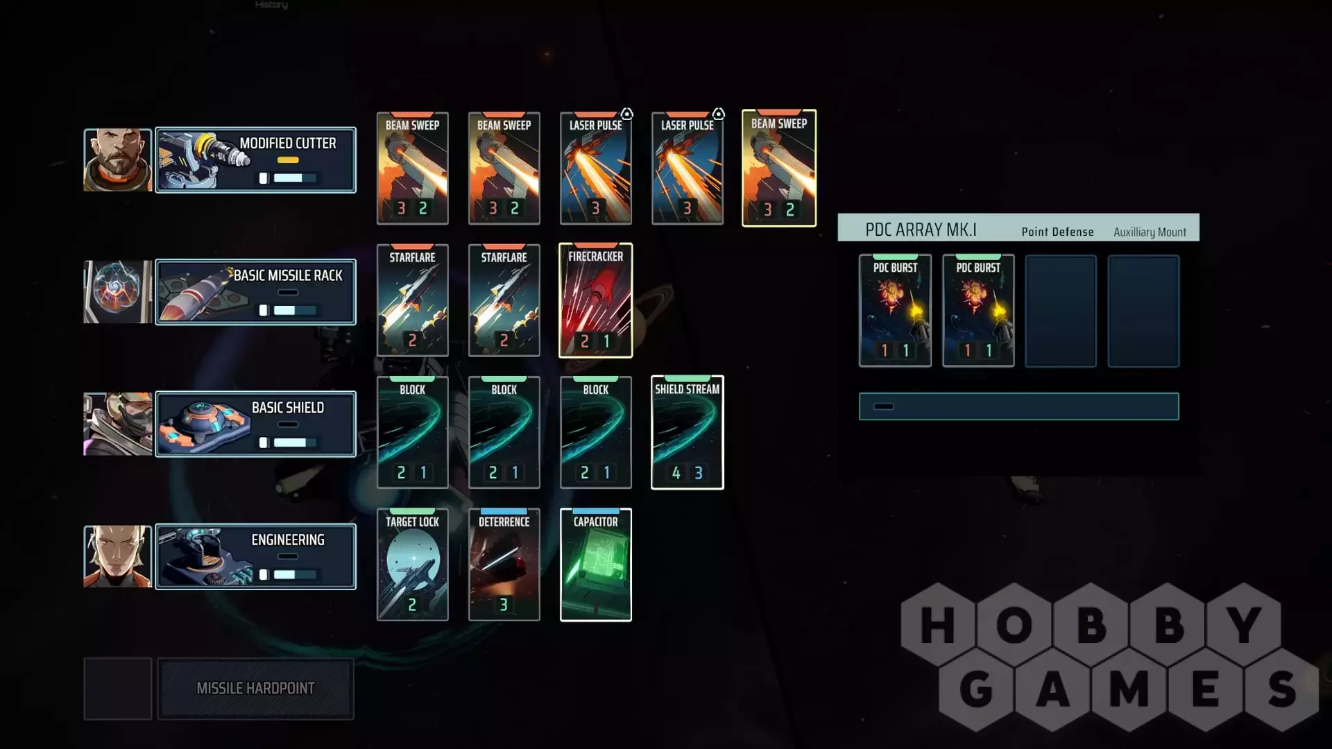 Выберите любой из множества корпусов кораблей и оснастите его оружейными системами, защитными надстройками и внутренними модулями. Каждый сделанный вами выбор добавляет несколько карт в вашу колоду, так что ищите наиболее удачные сочетания. После каждого боя вы сможете на свое усмотрение открыть дополнительные карты и улучшения.