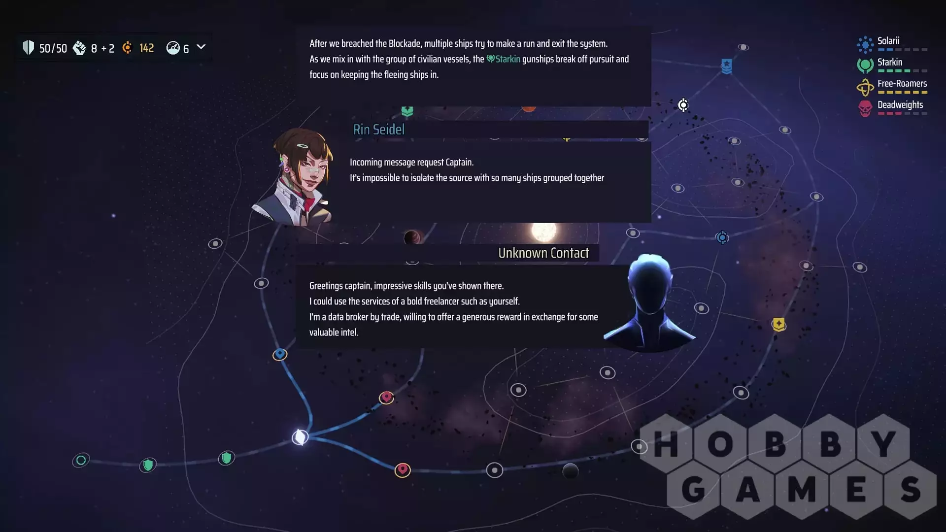 Сражайтесь с пиратами и общайтесь с представителями шести уникальных фракций, которые могут по-своему помогать или мешать вам. Принимайте непростые решения, сталкиваясь с обитателями разных систем. От ваших действий зависит мнение окружающих о вас и вашем экипаже.