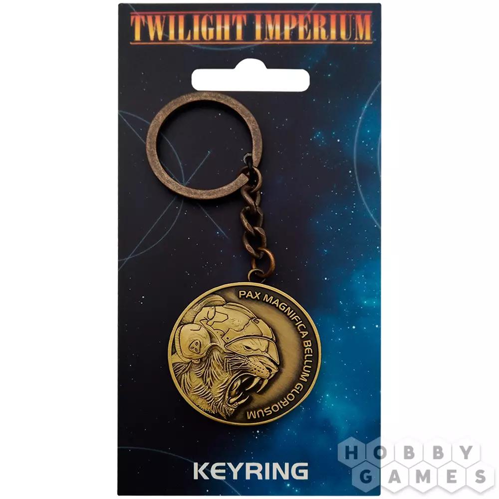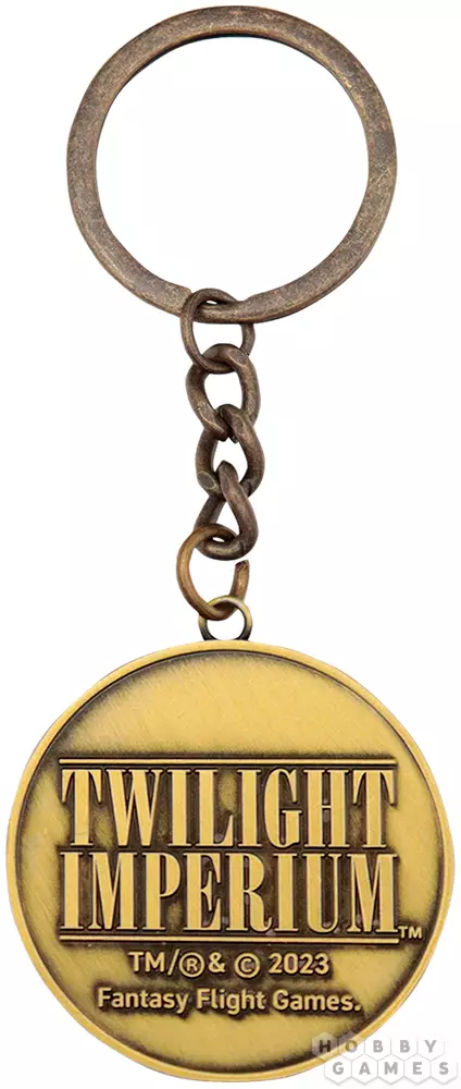 "Великолепный мир, славная война" – именно так вольно можно перевести надпись с этого брелока. Он посвящён двум чудесным десятилетиям, во время которых Twilight Imperium дарила своим преданным игрокам захватывающие истории.