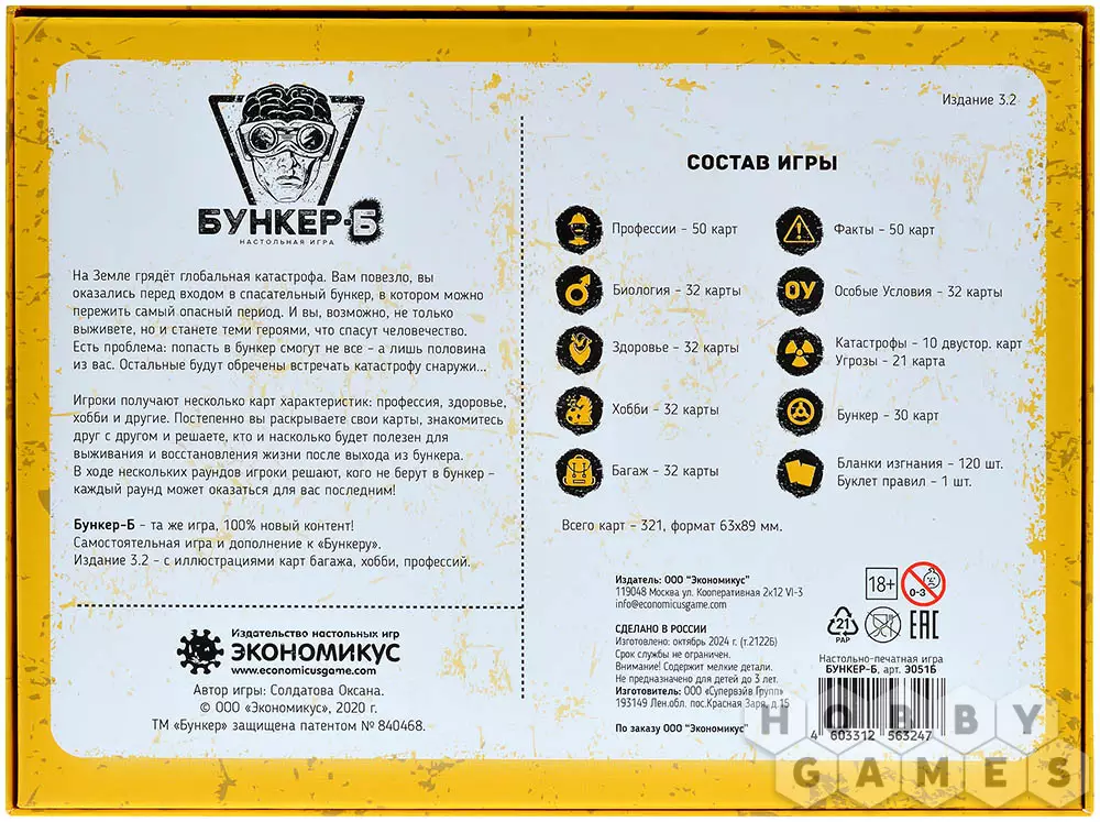 Великая классика не устаревает, но порой очень органично принимает обновления и становится ещё увлекательнее. Так и "Бункер-Б" – игра сохранила в себе все механики оригинала, но при этом обзавелась стопроцентно новым, уникальным контентом: обновила все типы карт – от персонажей до особых условий. А ещё – добавила целых 20 новых катастроф. Посмотрим: удастся ли вам пережить их так же, как вы уже пережили классические бедствия?