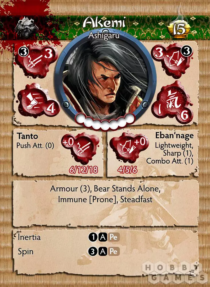 С помощью своего Eban'nage Akemi может не только наносить мощные удары, но и вытеснять противников из их собственных рядов с помощью Inertia Ki-Feat. Потрясающая способность!