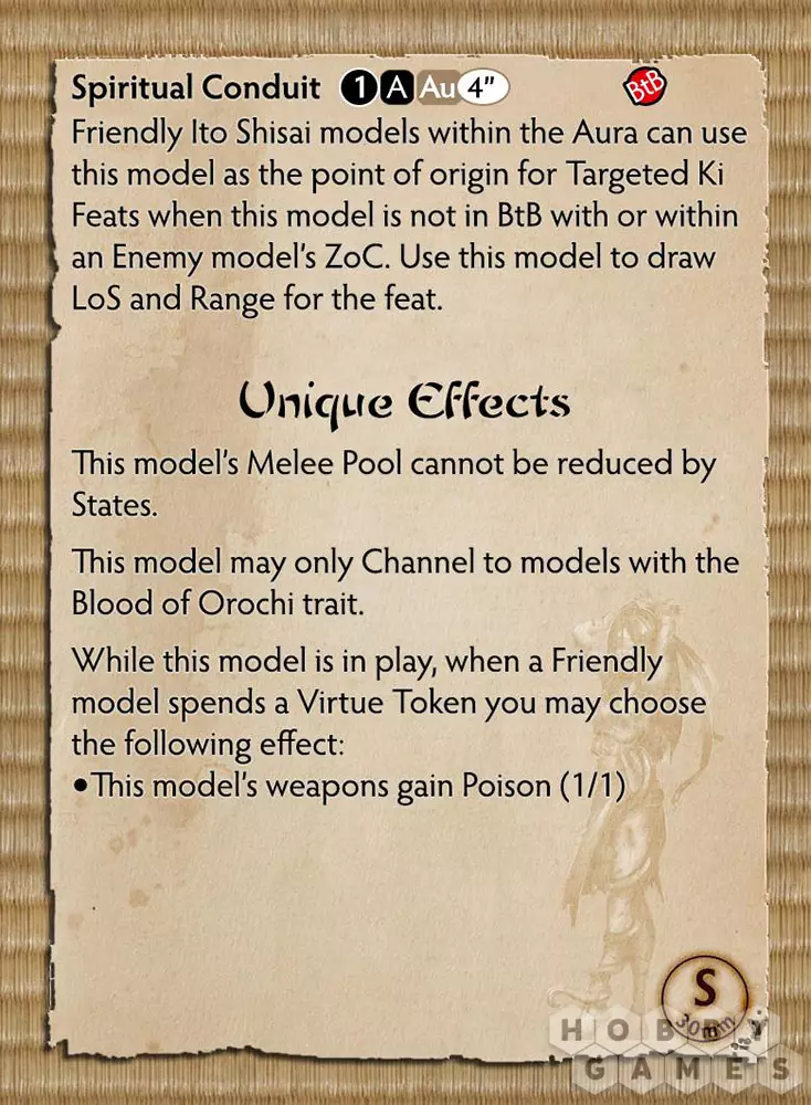 Отпрыски Орочи (The Children of Orochi) служат в его храмах, потомки клана Ito дают обет отцу и отдают всё, включая свои души, Великому Свёрнутому Кольцом (the Great Coiled One) в надежде, что он одарит их своей милостью и изменит их несовершенный облик, который они прокляты носить, пока не докажут, что достойны его. Избранные, столь преданные ему, способны использовать свои тела как проводники его силы, расширяя зону влияния Orochi и силу Shisai.