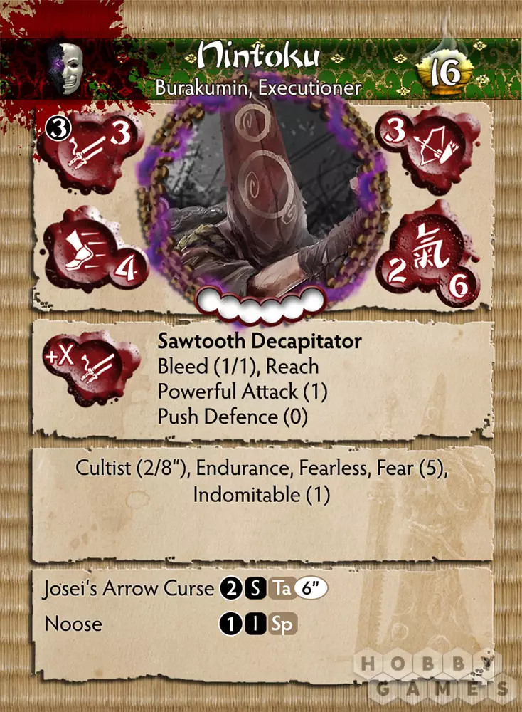На поле боя Nintoku – грозный боец ближнего боя, но его истинная сила в том, что он прокладывает путь к победе для других буракуминов. Когда его петля сжимает горло врага, союзники получают шанс обрушить на противника самые страшные и изощрённые приёмы, какие только возможны в Cult of Yurei. И зачастую эти приёмы столь же эффективны, сколь и отвратительны.